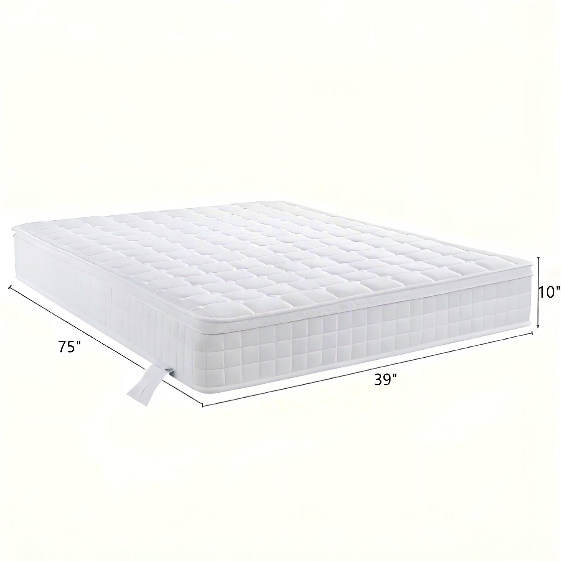 10" Twin Mattress, Innerspring Hybrid With Gel Foam For Motion Isolation, Pressure Relief & Edge Support - White