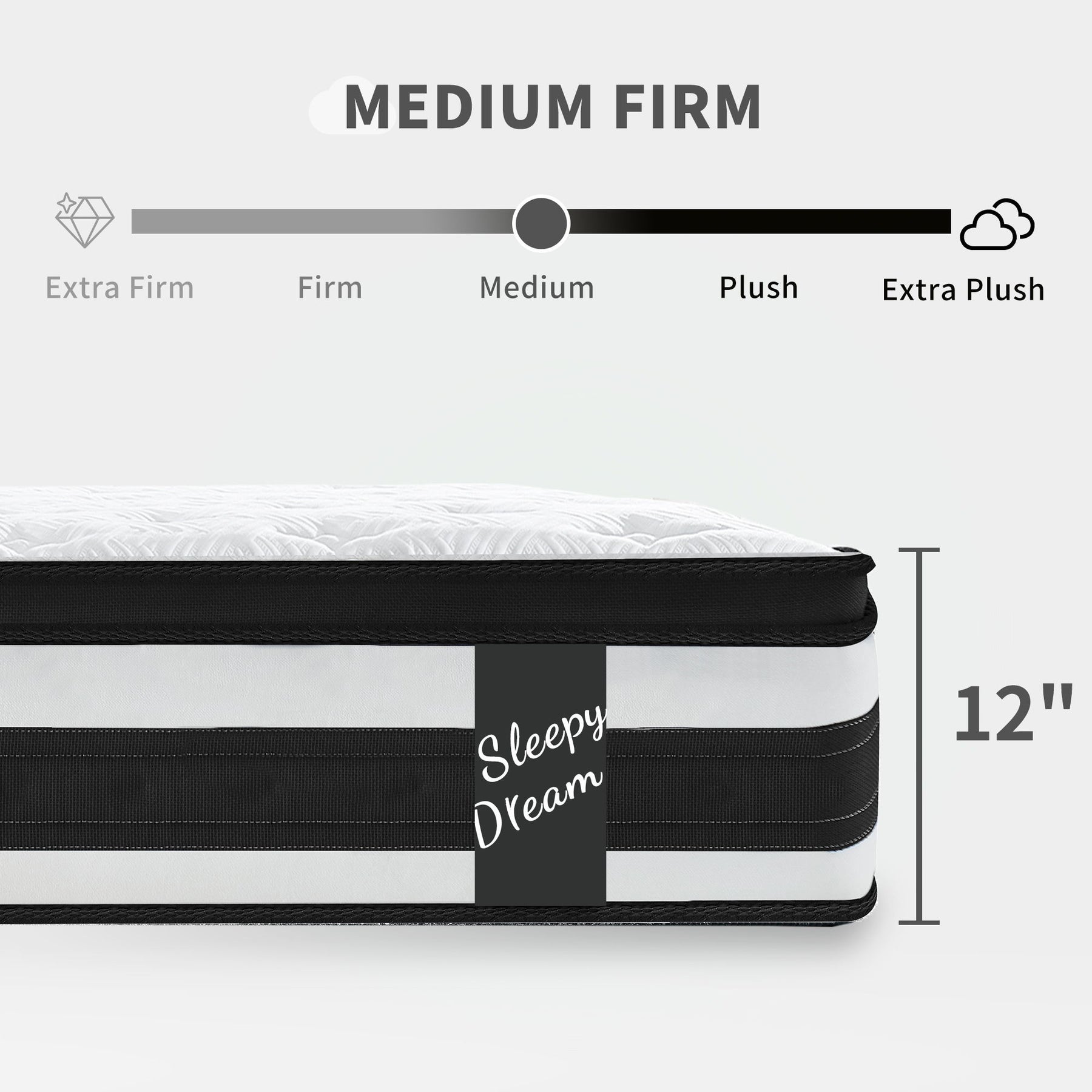 12" Twin Hybrid Mattress With Individual Pocket Spring Soft Memory Foam Breathable Knitted Cover - White / Black