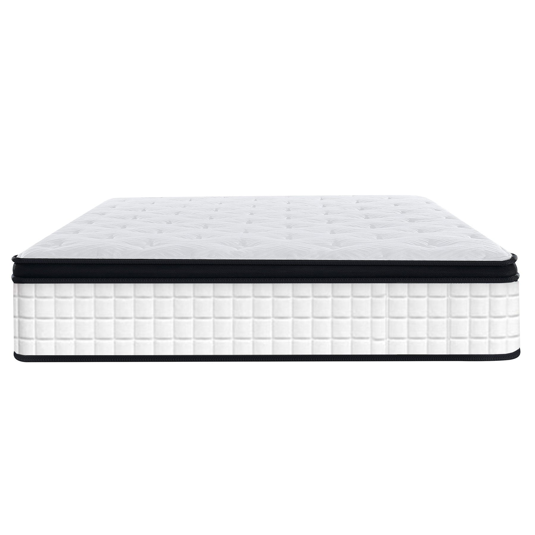 12" Full Size Hybrid Mattress With 7 Zoned Individual Pocket Spring Memory Foam Breathable Knitted Cover - White / Black