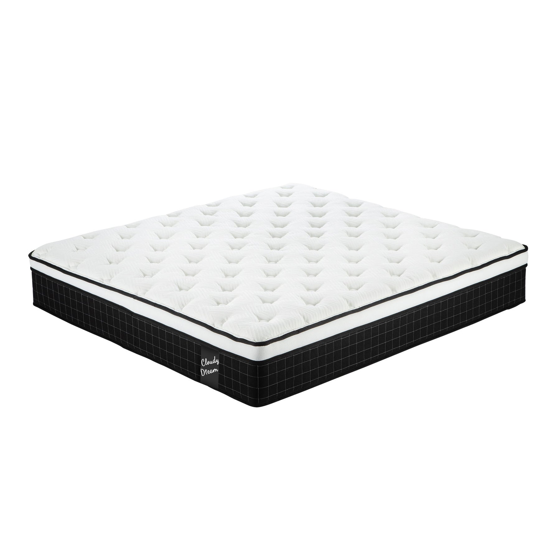 12" King Size Hybrid Mattress Individual Pocket Spring 7 Zoned Soft Memory Foam Breathable Cool Knitted Cover - Black