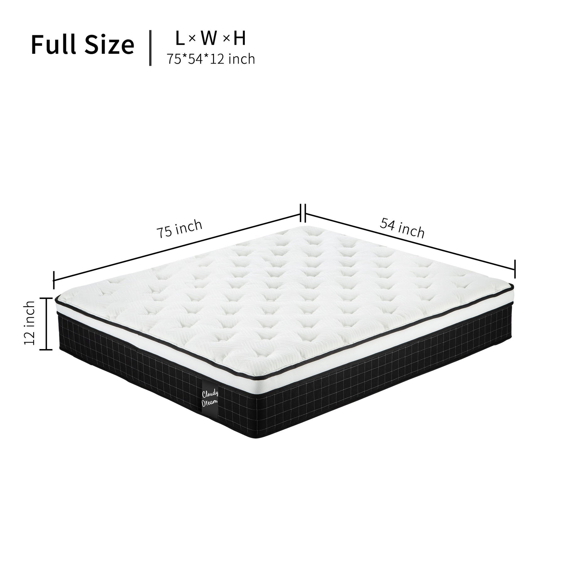12" Full Size Hybrid Mattres 12" With 7 Zoned Memory Foam Individual Pocket Springs Breathable Knitted Cover - White