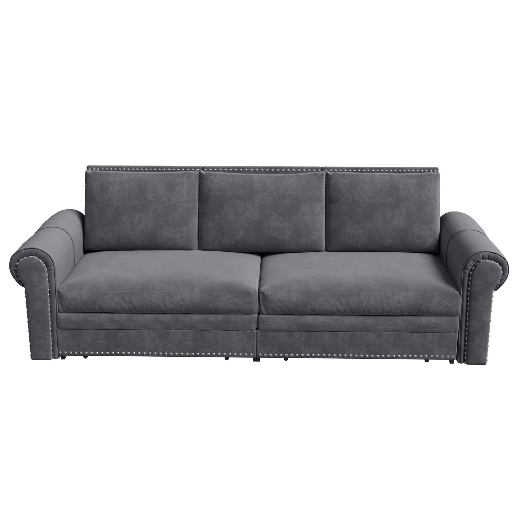 Pull Out Sofa Bed, 3 In 1 Convertible Sleeper Sofa With Nailhead Trim & Rolled Arm, Multi Functional Sofa Bed For Living Room, Bedroom, Apartment, Office - Gray