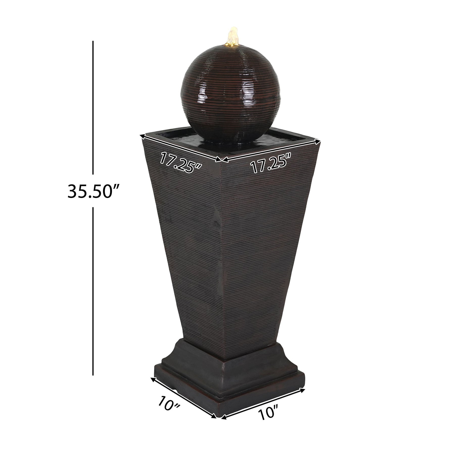 35.5" Tall Column Fountain With LED Lights, Retro Outdoor Decor, Weather Resistant Feature - Dark Brown