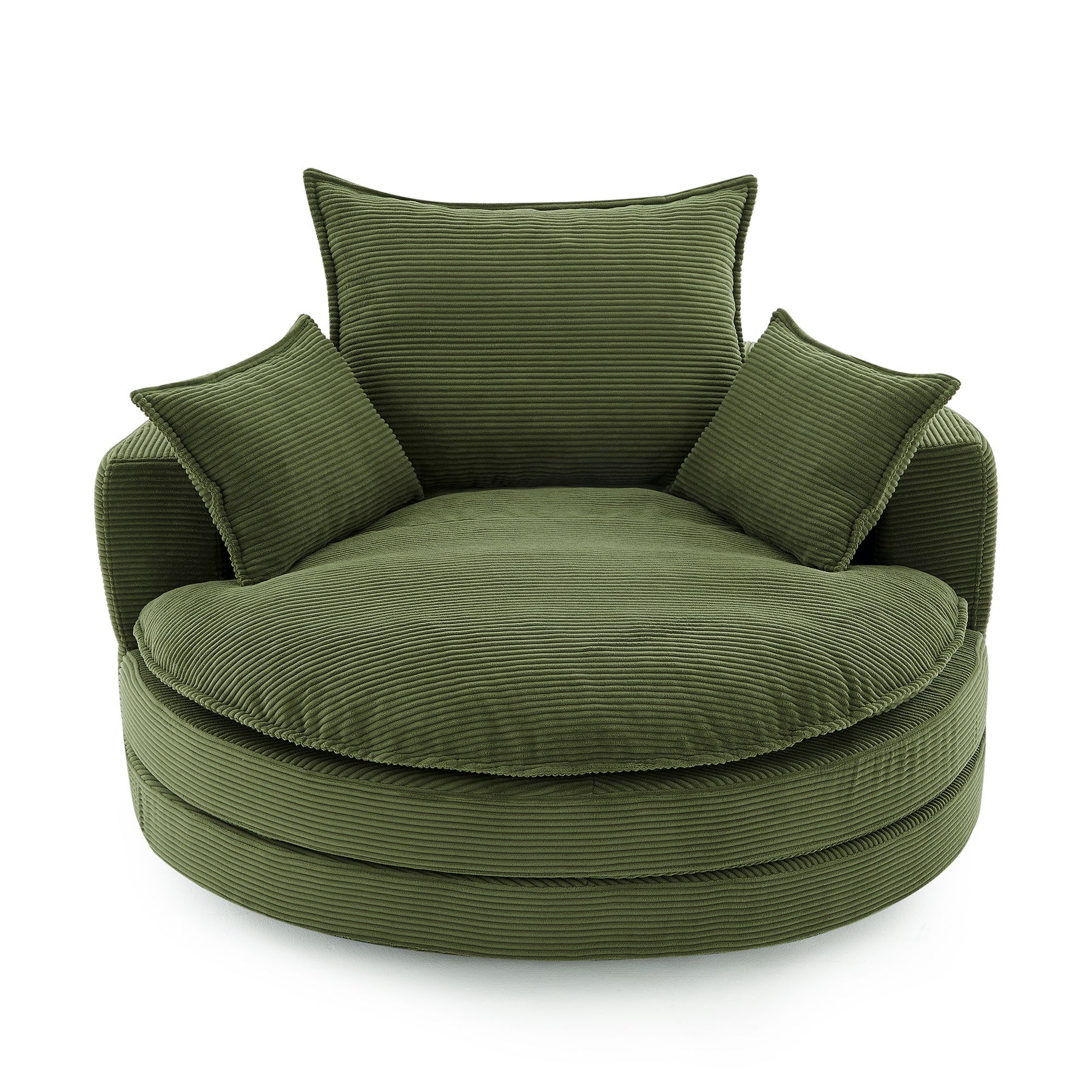 Contemporary 360° Swivel Sofa Chair With Dual Layer Cushion Design And Removable Pillows Corduroy - Green