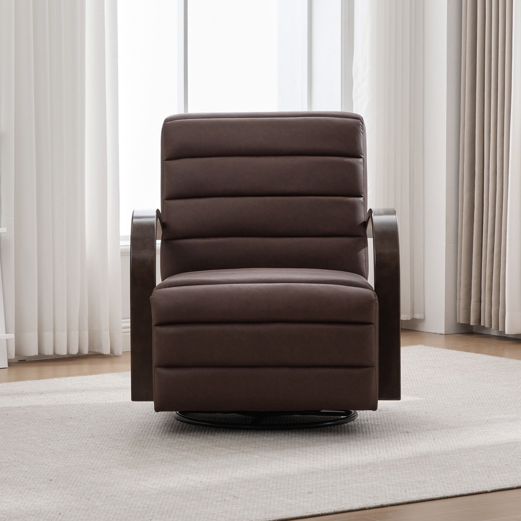 - Unique Armrest Design: Curved solid wood arms wrap around the silhouette, adding an intriguing element.