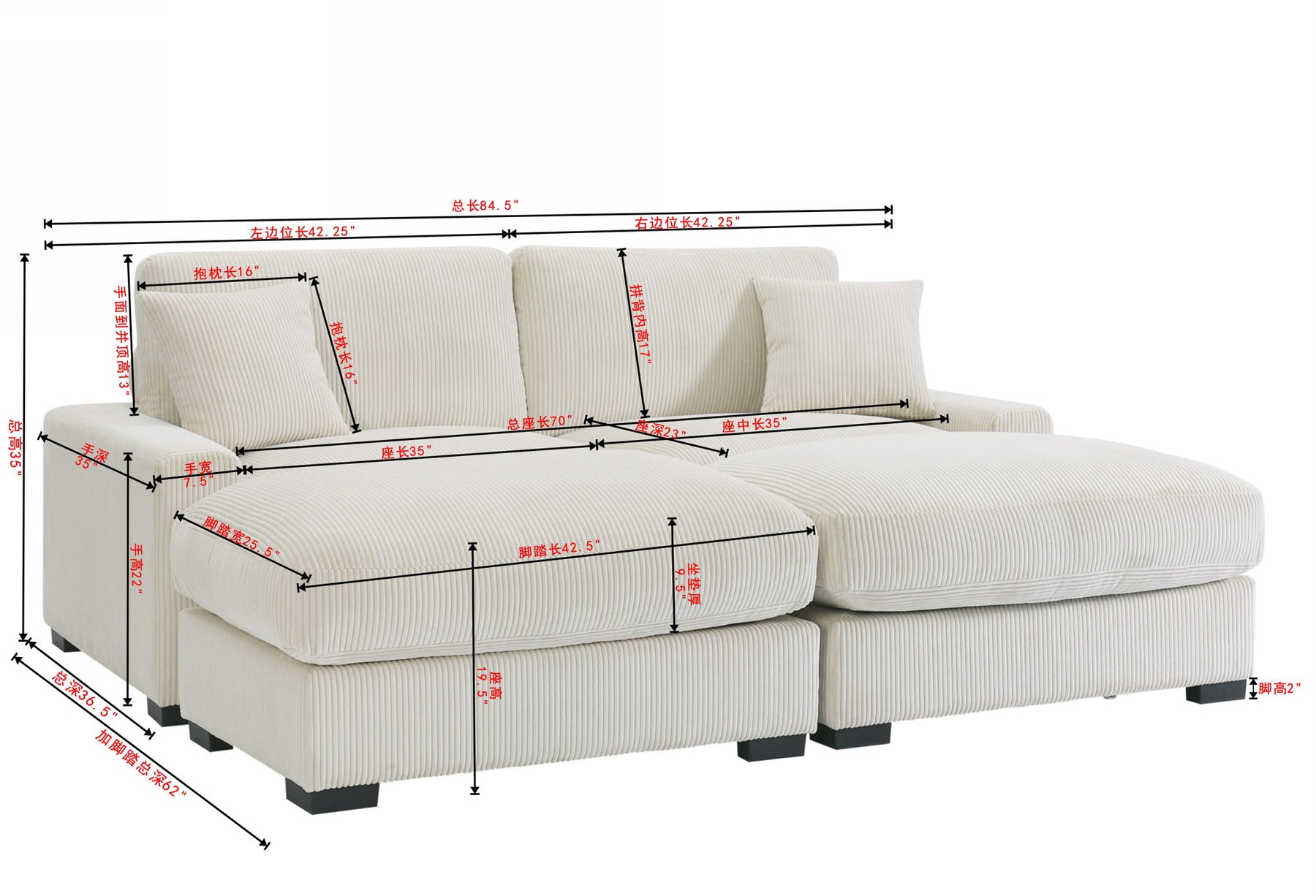 Modular Sectional Sofa, 4 Seater Oversized Sectional Sofa, Corduroy Fabric With 2 Ottoman Bench And 2 Pillows, Modular Sectionals Sofa Couch For Living Room - Cream