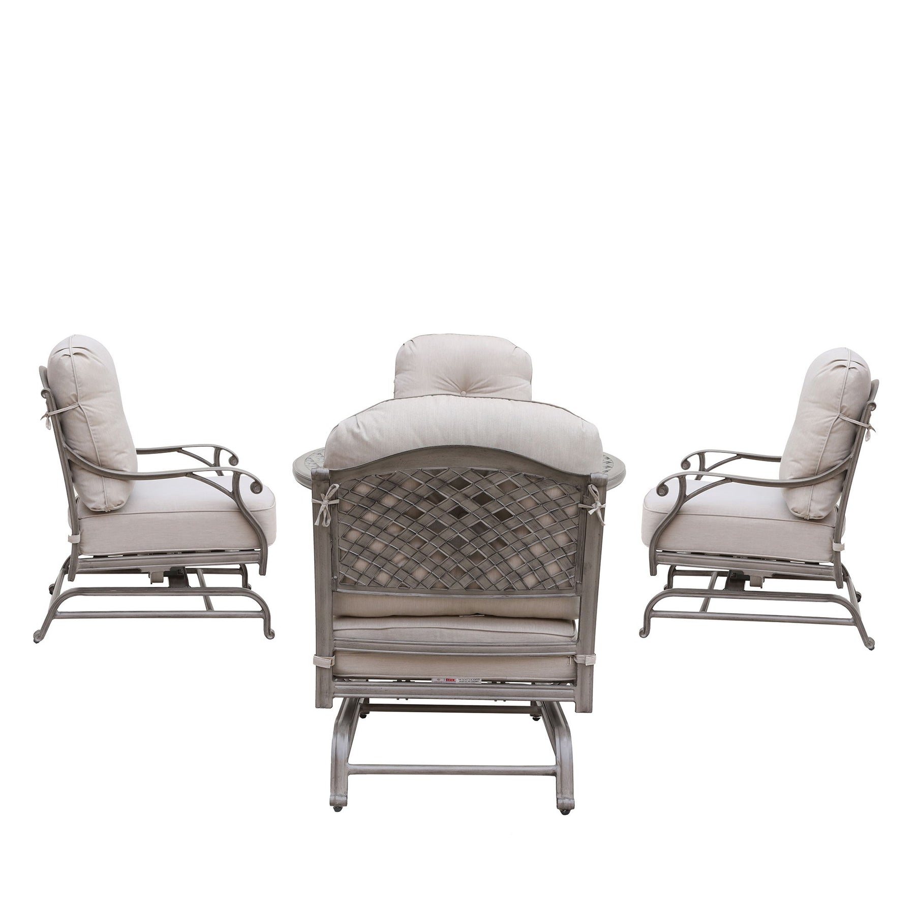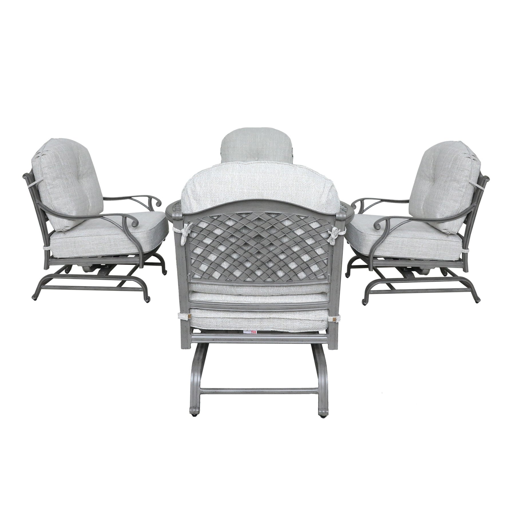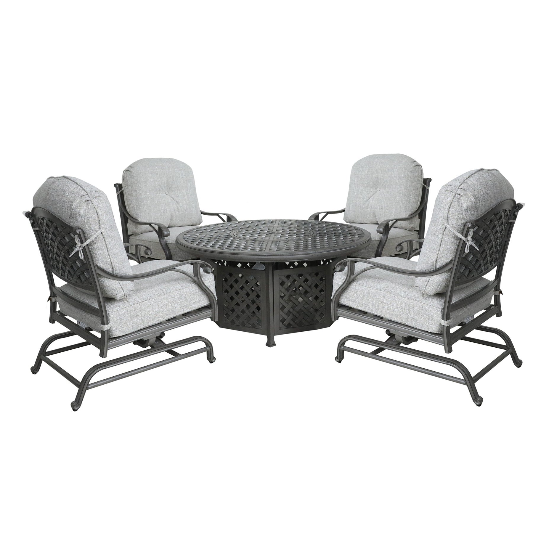 - Versatile 5-Piece Set: Includes 4 club motion chairs and a round fire pit table, ideal for various outdoor gatherings.