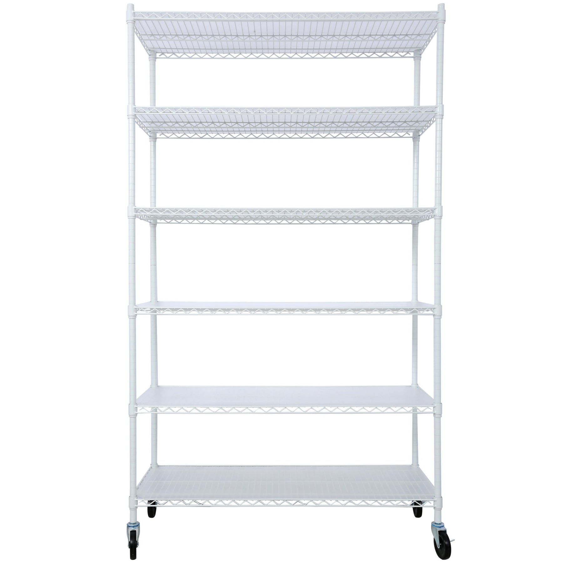6 Tier 6000Lbs Capacity Nsf Metal Shelf Wire Shelving Unit, Heavy Duty Adjustable Storage Rack With Wheels & Shelf Liners For Commercial Grade Utility Steel Storage Rack - White