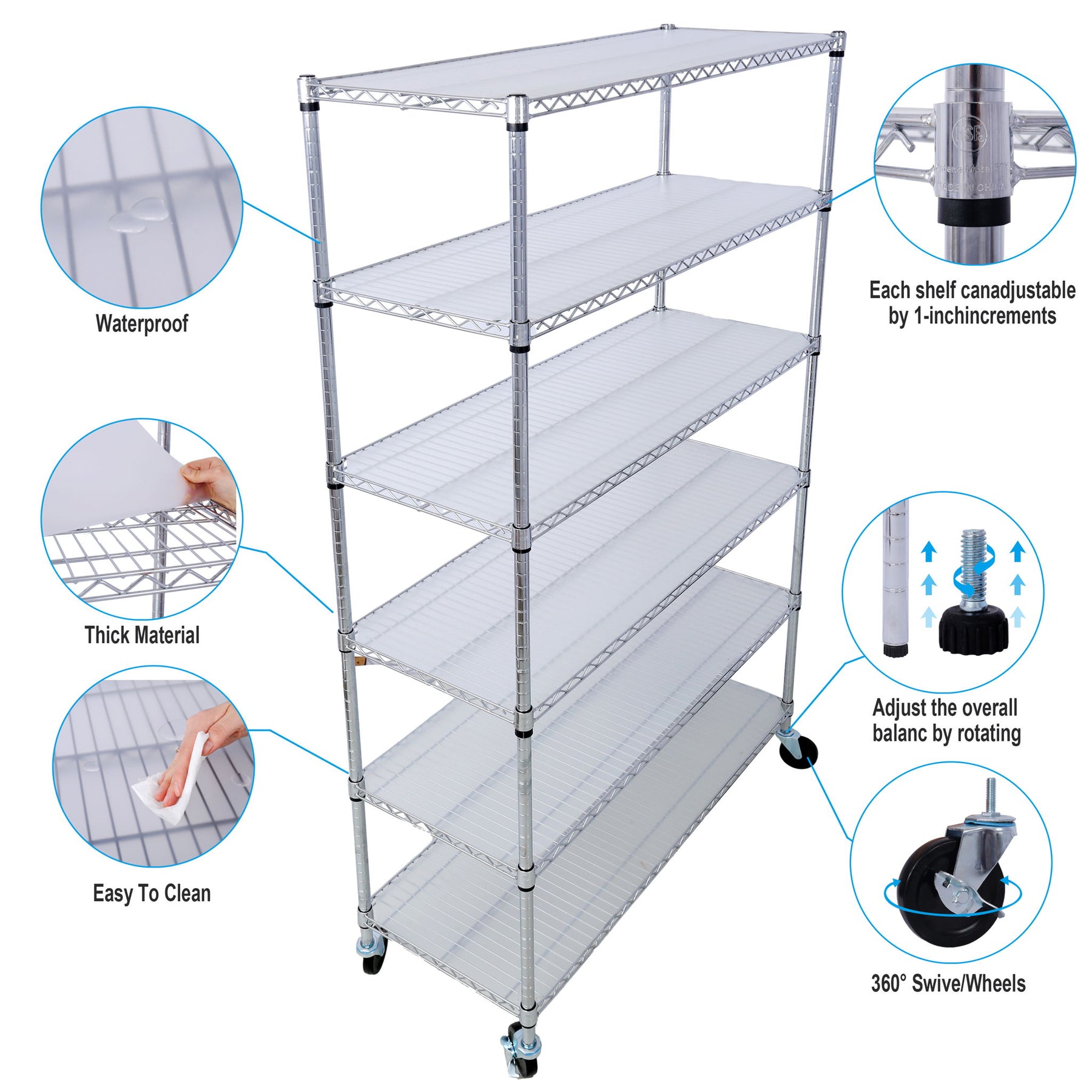 6 Tier 6000Lbs Capacity Nsf Metal Shelf Wire Shelving Unit, Heavy Duty Adjustable Storage Rack With Wheels & Shelf Liners For Commercial Grade Utility Steel Storage Rack - Chrome