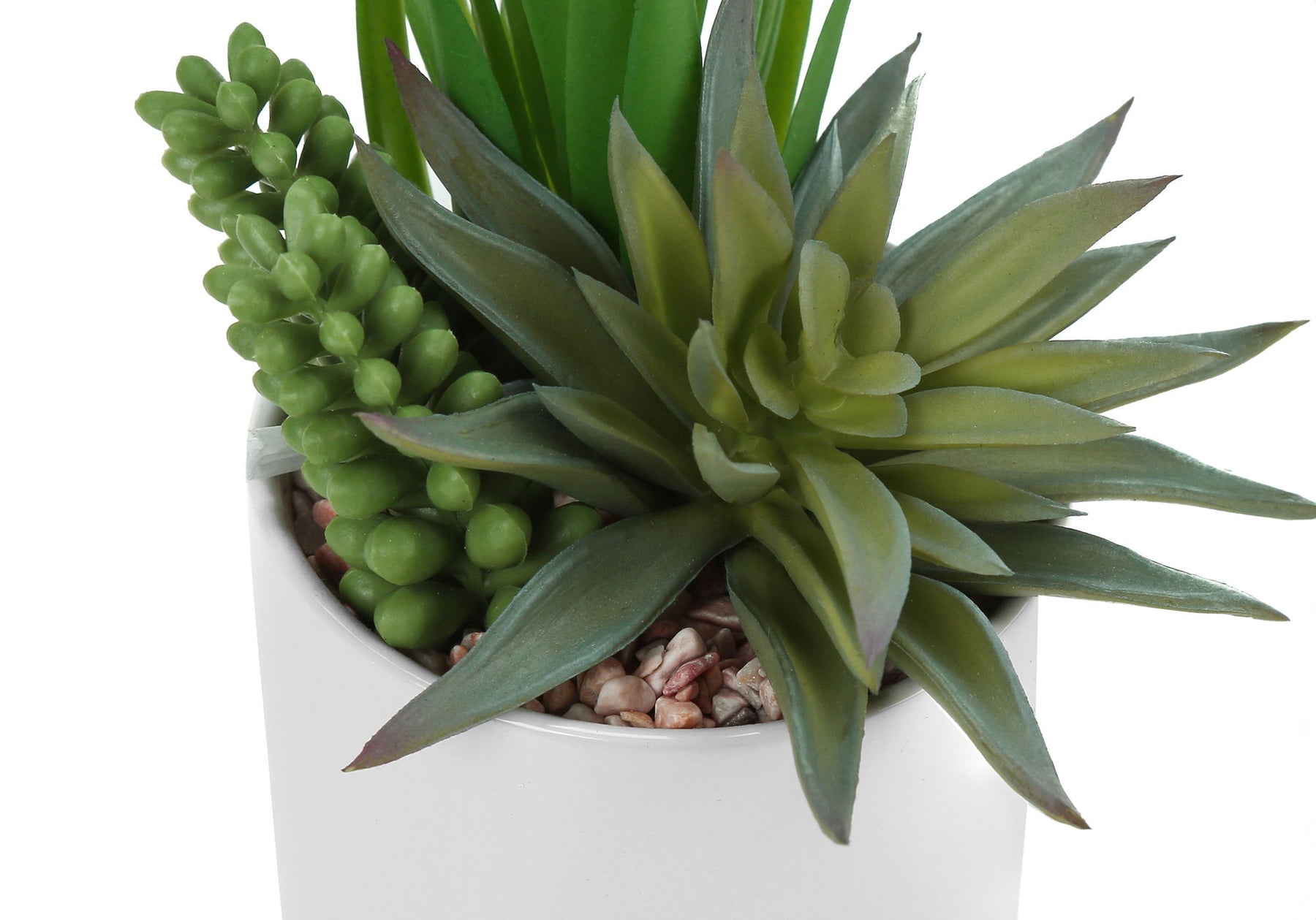 7" Tall, Artificial Plant, Succulent, Indoor, Faux, Fake, Table, Greenery, Potted, Decorative (Set of 2) - Green / White