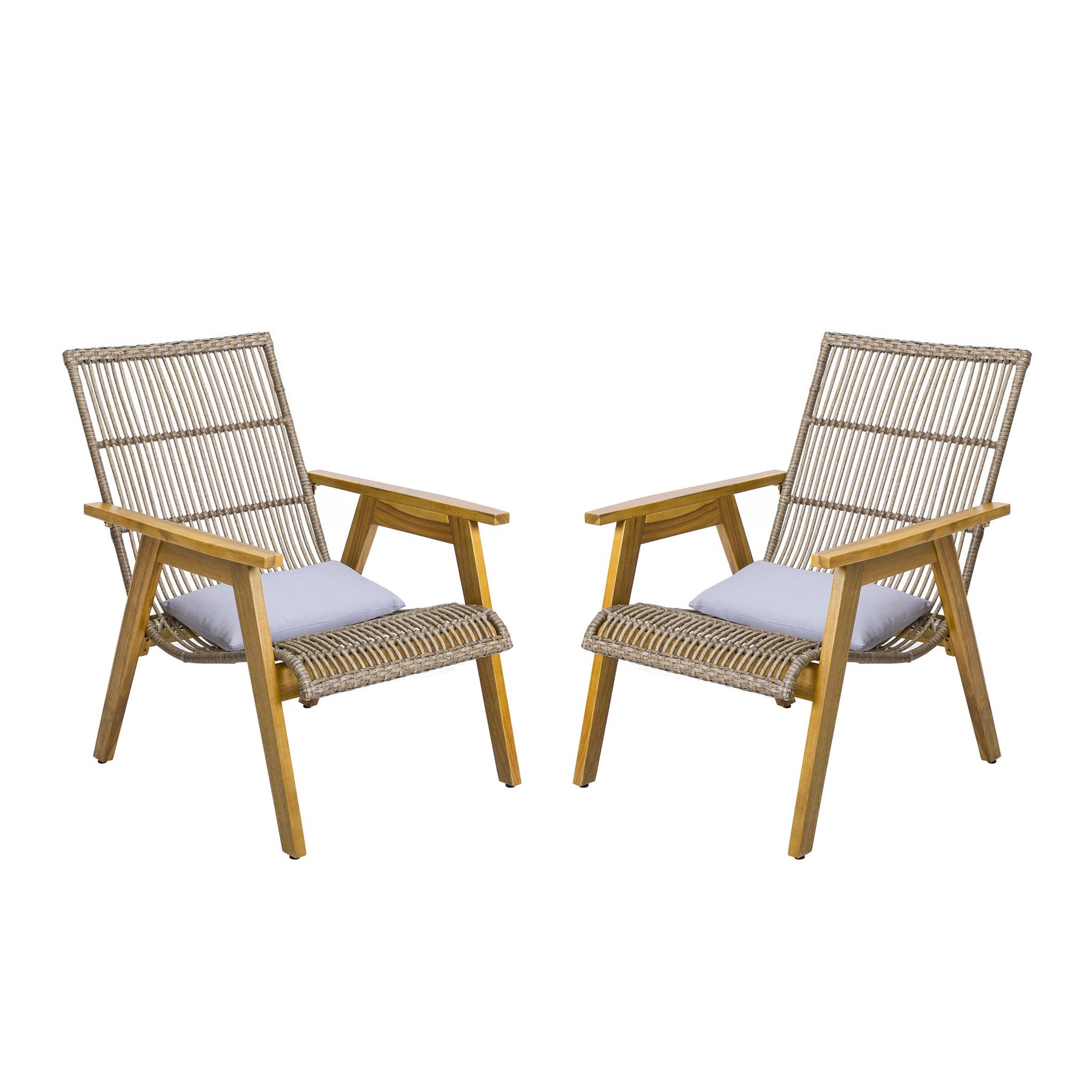 Acacia Wood Cape Woven Wicker Large Lounge Chair With Pillow For Patio, Deck, Yard, Lawn And Garden Seating Wicker (Set of 2) - Teak