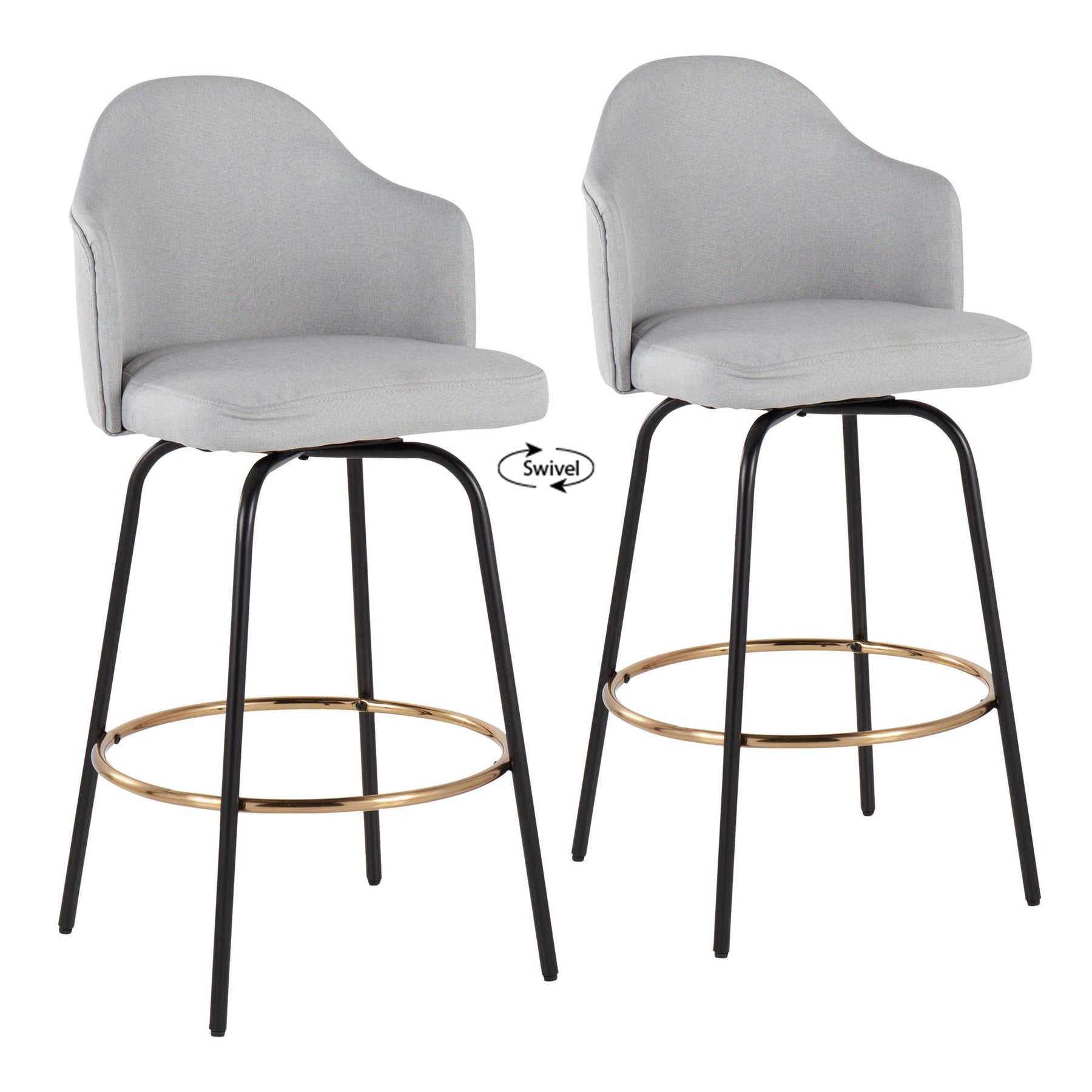 Ahoy - Contemporary Fixed Height Counter Stool Round Gold Footrest (Set of 2) - Gray / Black