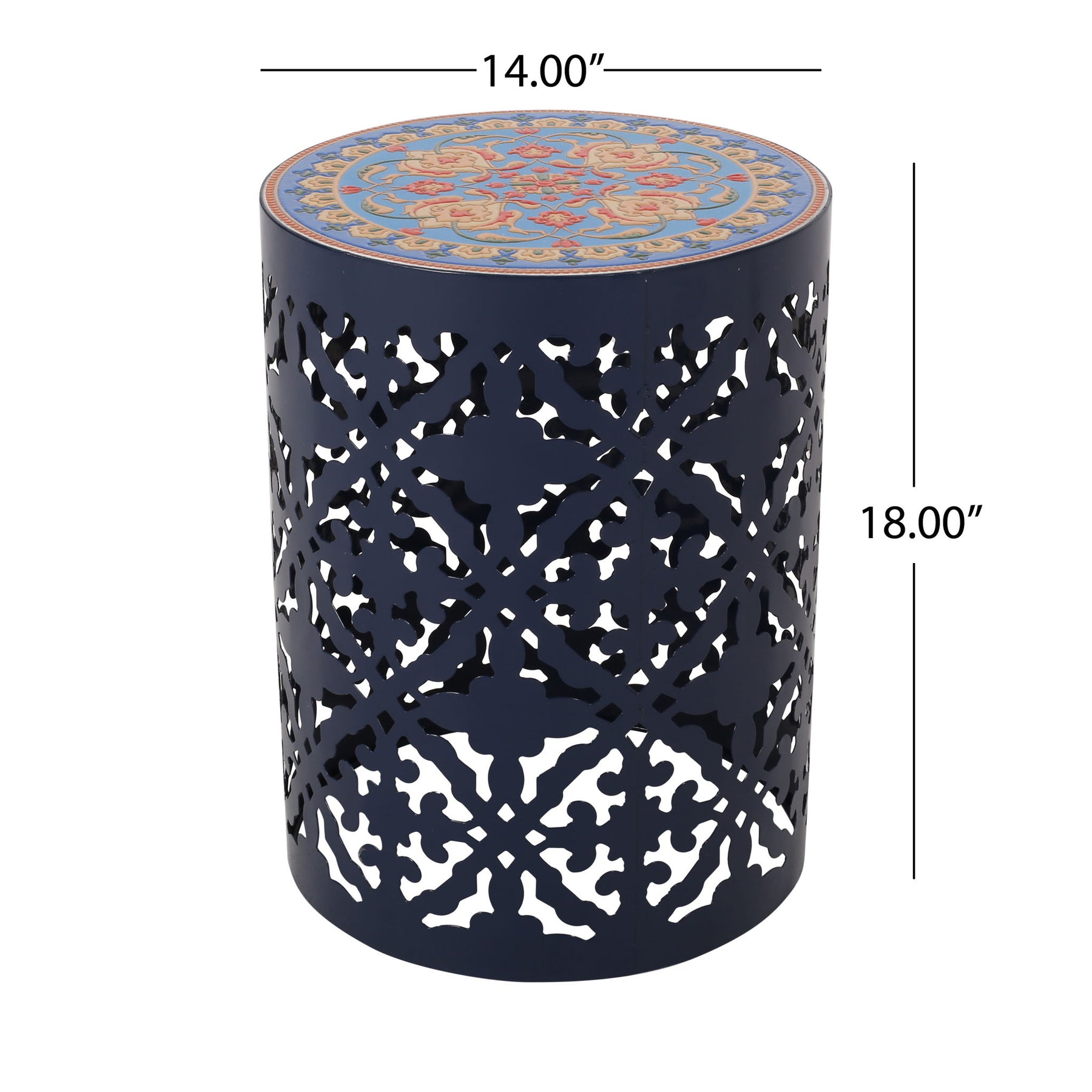 Outdoor Lace Cut Metal Side Table - Dark Blue