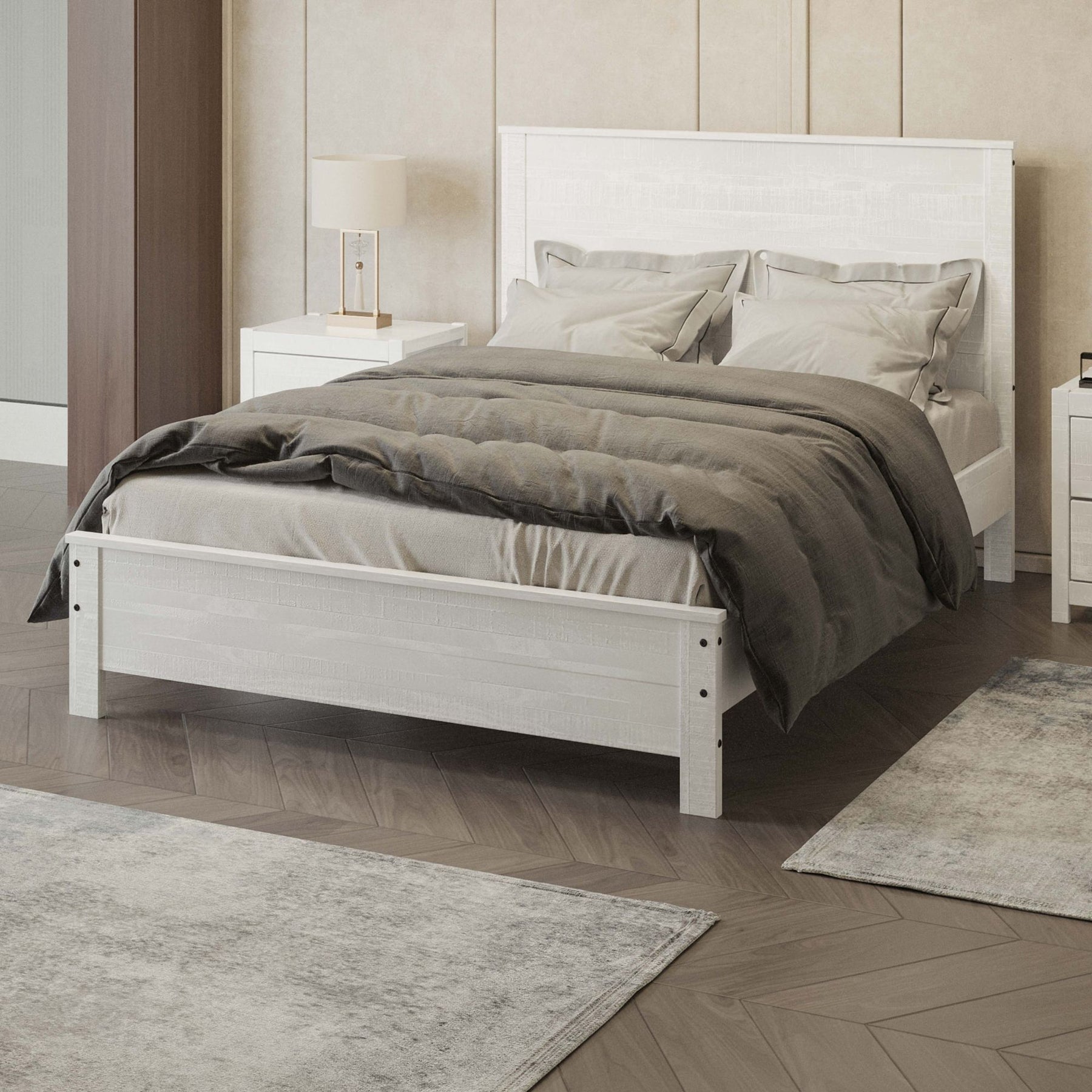 Albany - Queen Bed Frame With Headboard, Heavy Duty Modern Rustic Design - White