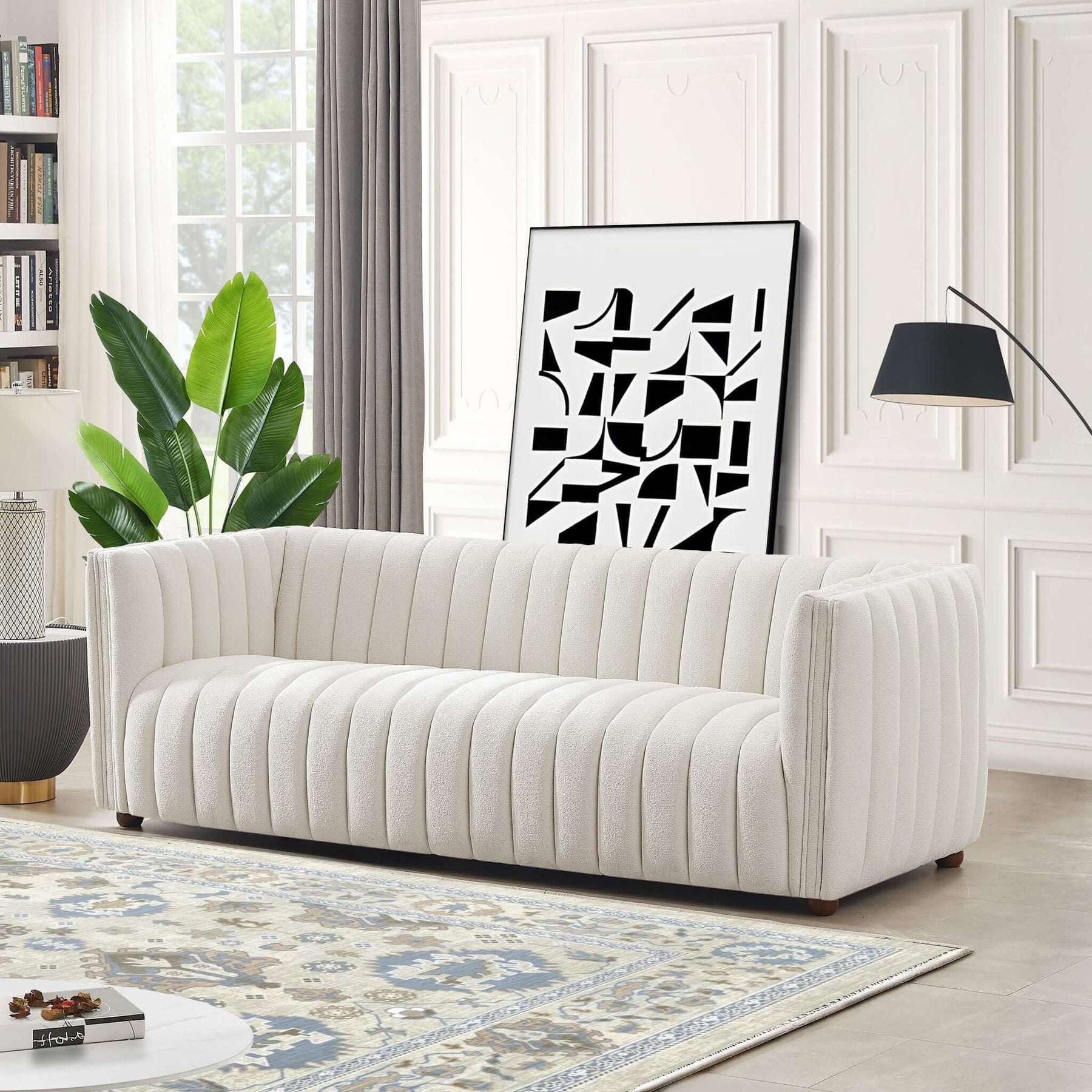 April - Mid-Century Modern Luxury Tight Back Boucle Couch - Ivory / Light Beige / White