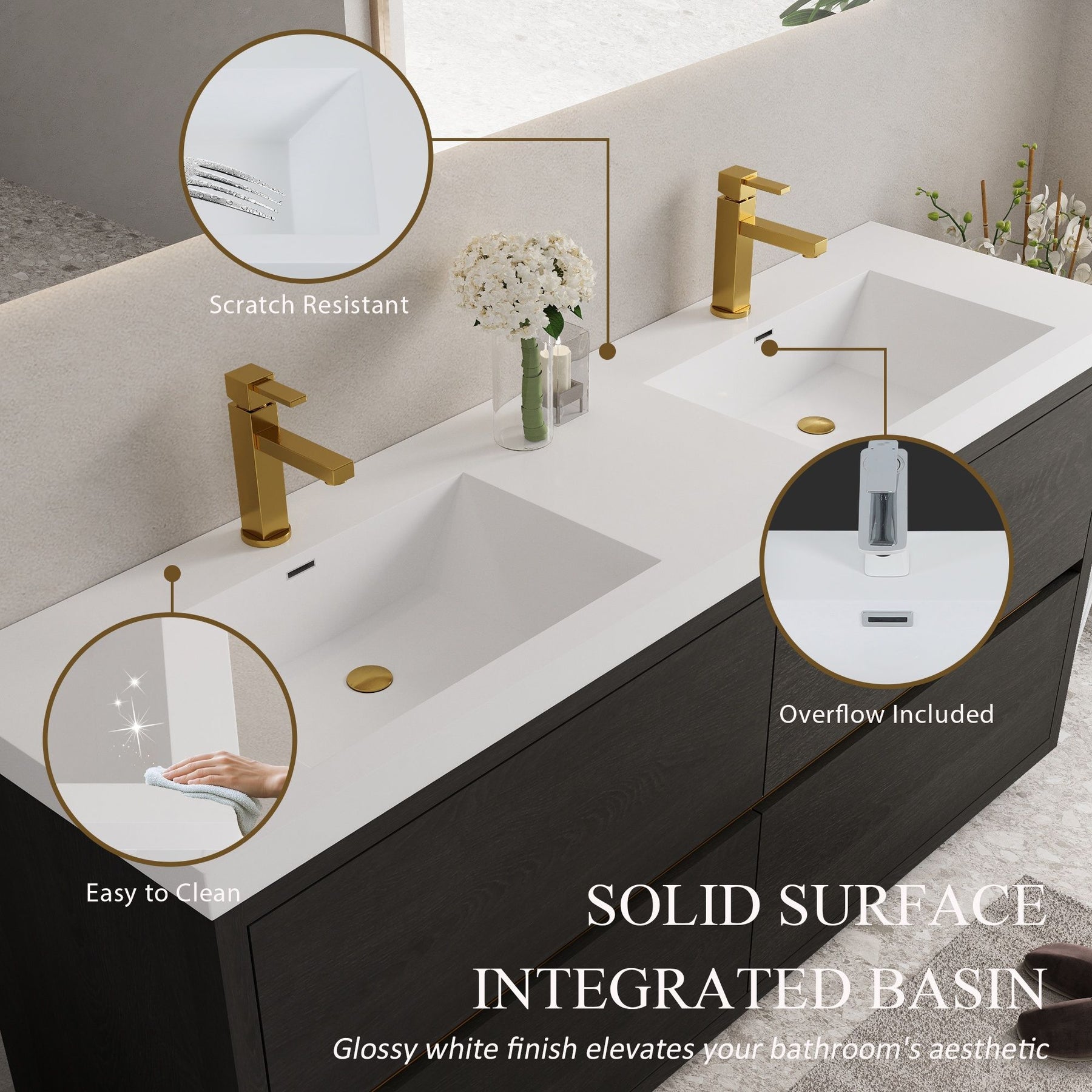 Freestanding Bathroom Vanity With Sink, Bathroom Storage Vanity Cabinet With Stone Resin Countertop And Soft Close Drawers - Espresso