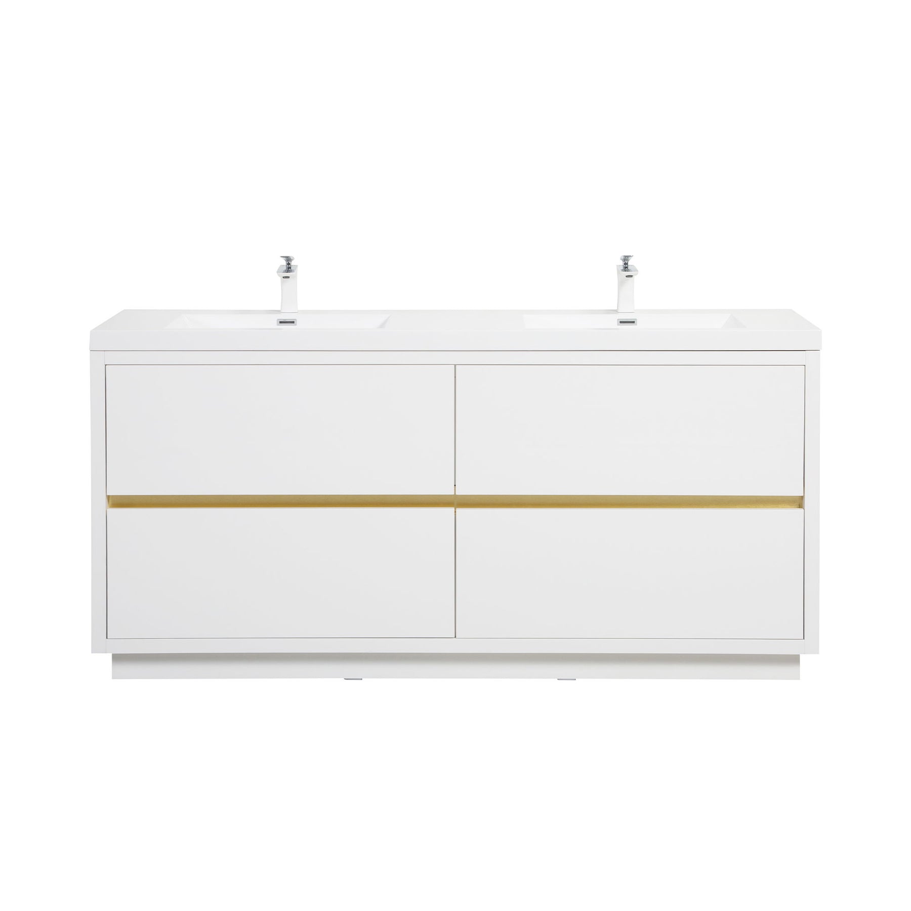 Freestanding Bathroom Vanity With Sink, Bathroom Storage Vanity Cabinet With Stone Resin Countertop And Soft Close Drawers - Glossy White
