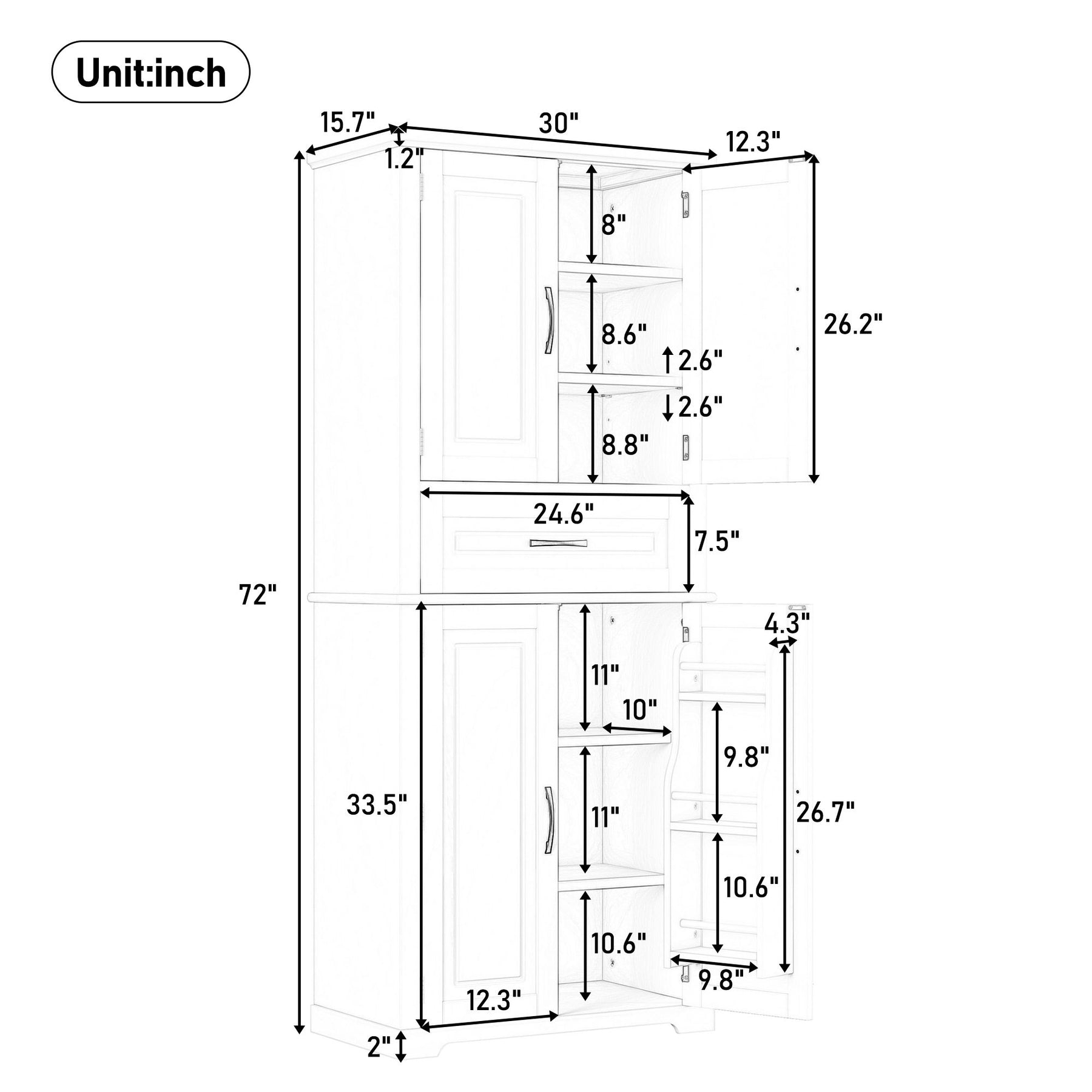 30.0"W x 15.7"D x 72.0"H - 114.7 lb