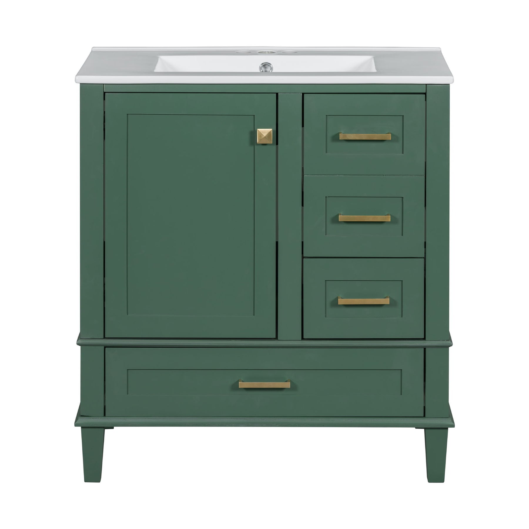 Bathroom Vanity, Modern Bathroom Cabinet With Sink Combo Set, Bathroom Storage Cabinet With A Soft Closing Door And 3 Drawers, Solid Wood Frame - Green