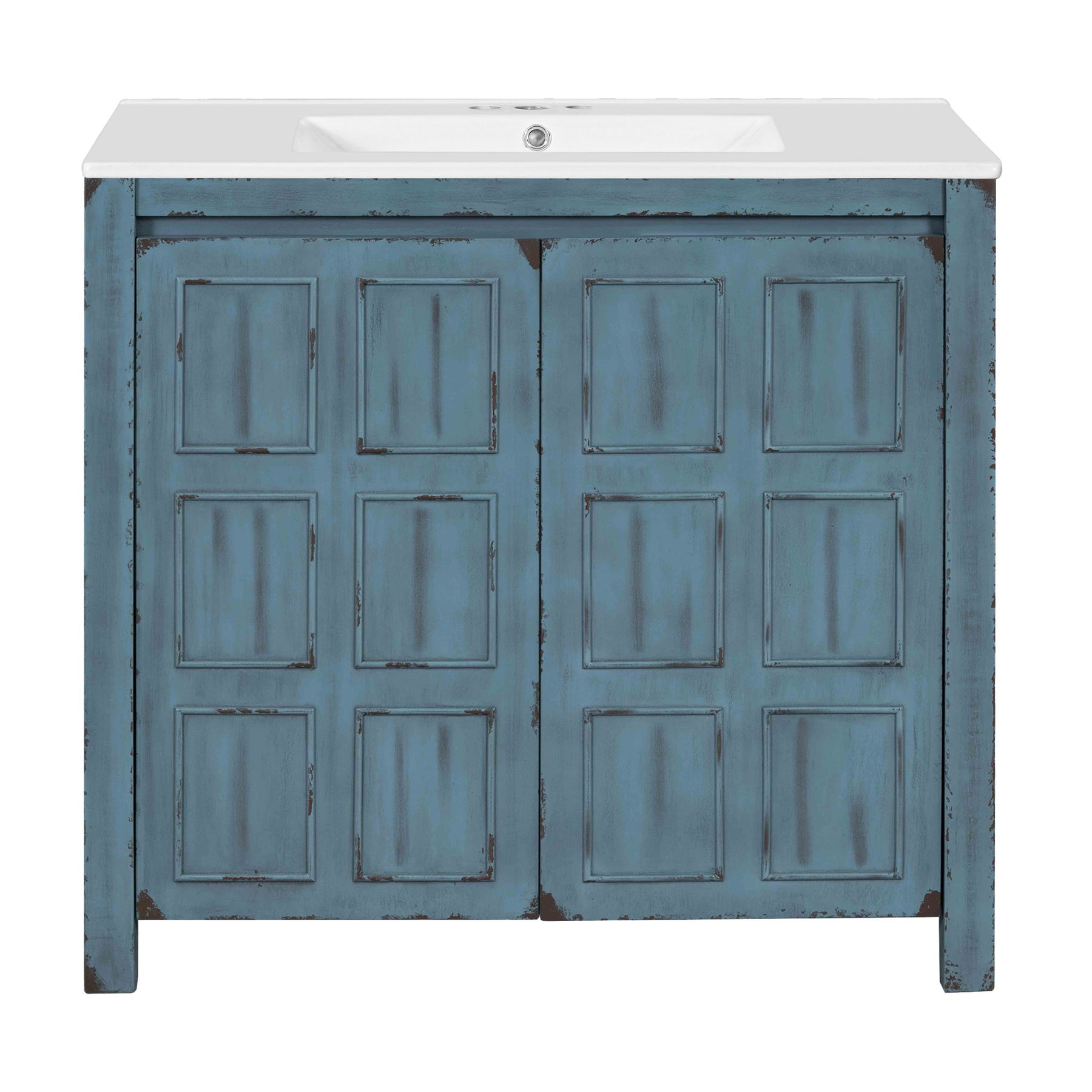 Vintage Bathroom Vanity Organizer With Sink And Storage Cabinet, 36" - Antique White