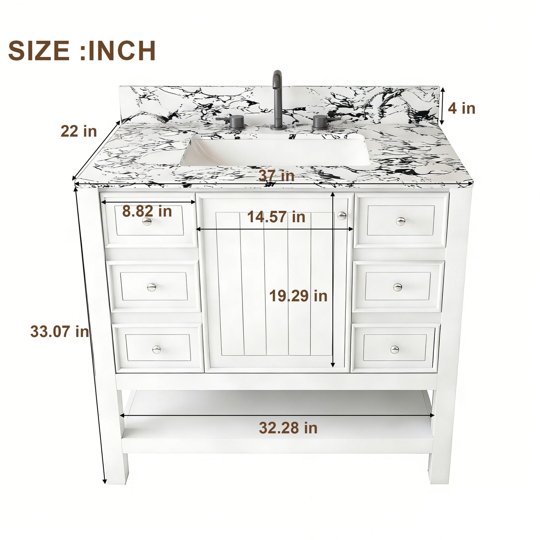 - Easy Sink Integration: Pre-drilled faucet holes support standard 37x22-inch ceramic sinks for hassle-free setup
