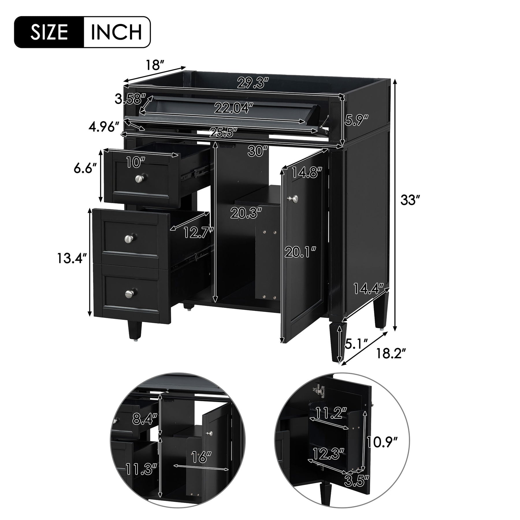Bathroom Vanity With 2 Drawers And Tip-Out Drawer, Storage Cabinet - Black