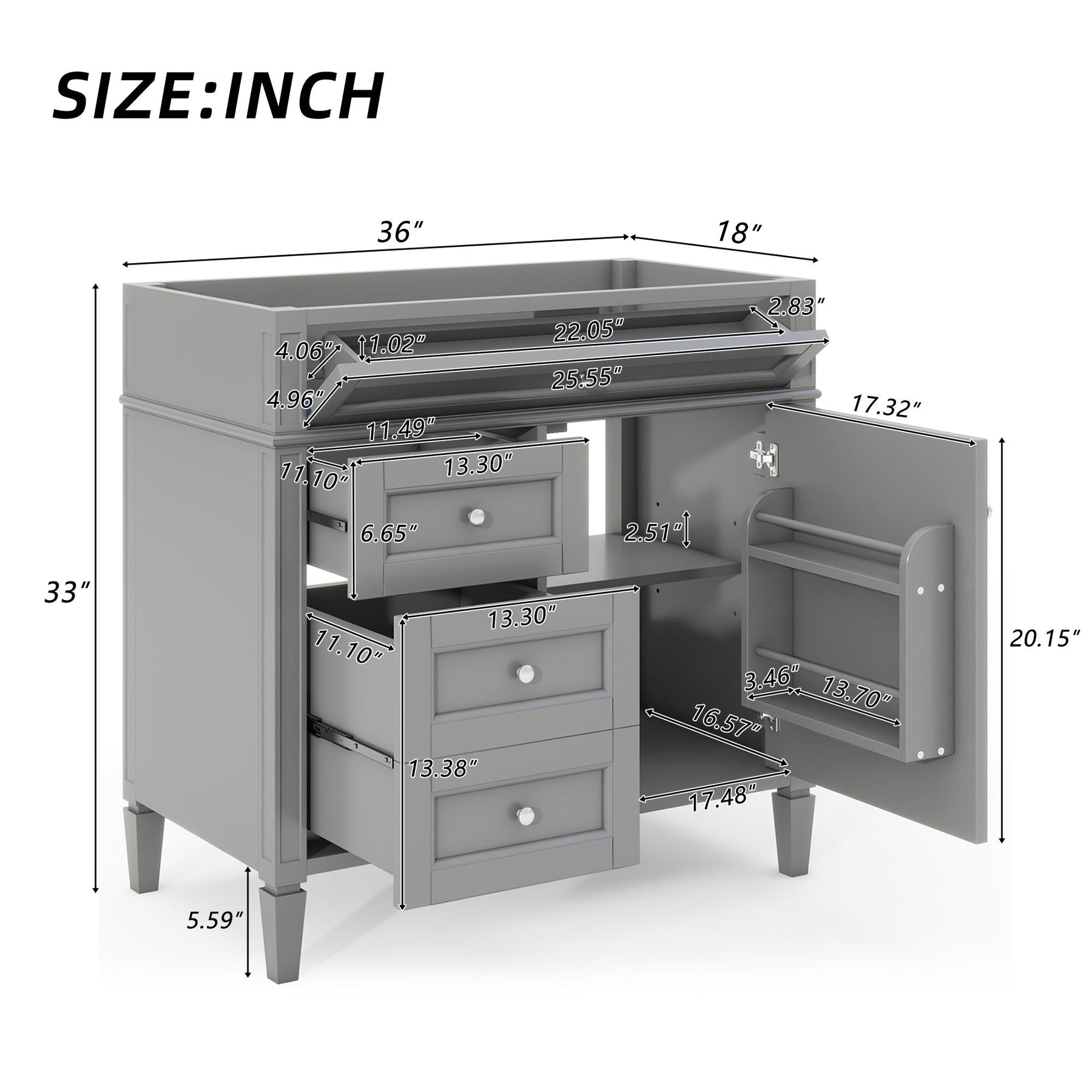 36'' Bathroom Vanity With 2 Drawers And Tip-Out Drawer - Gray