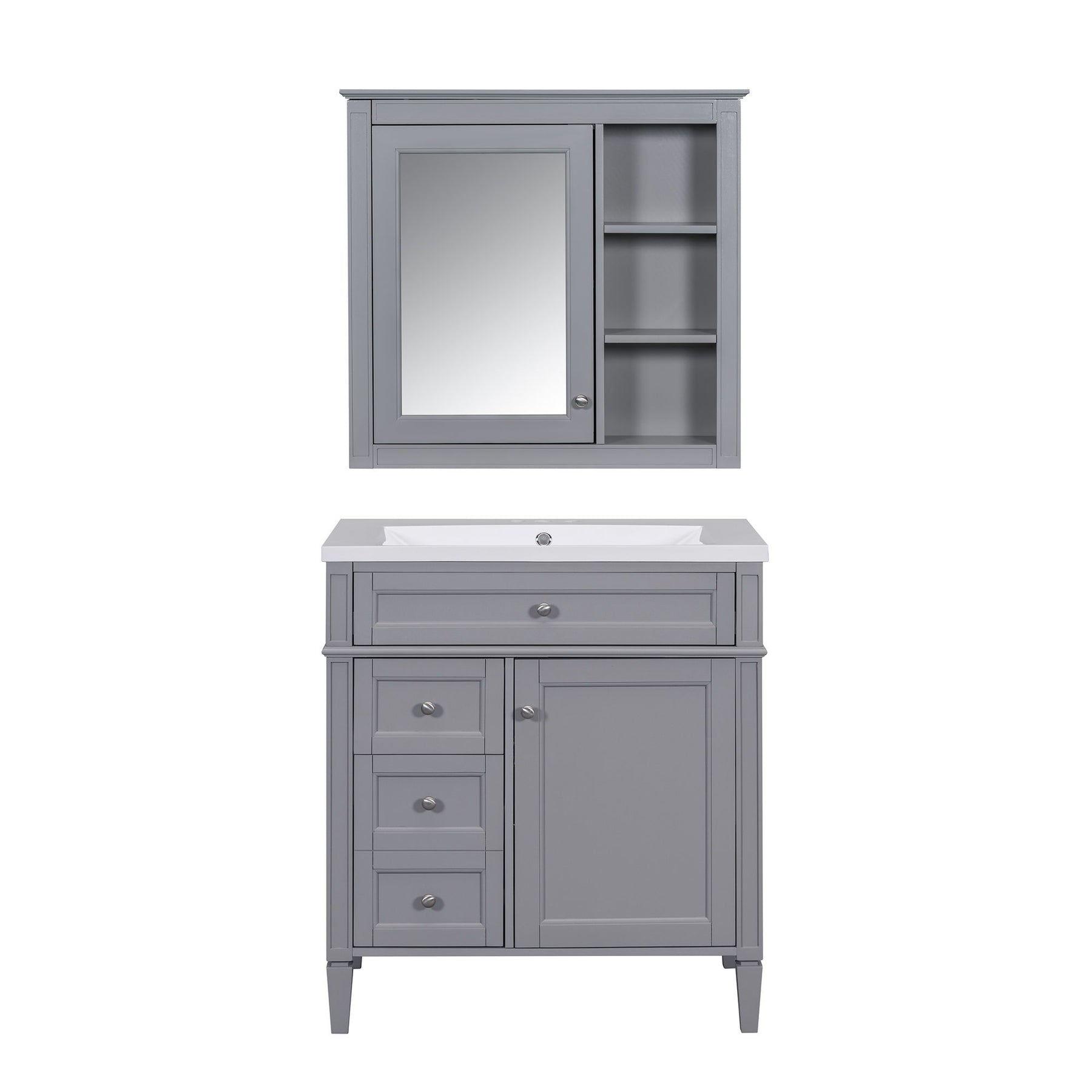Bathroom Vanity With Top Sink, Storage Cabinet With 2 Doors And 3 Drawers, Freestanding Set With Mirror Cabinet - Gray