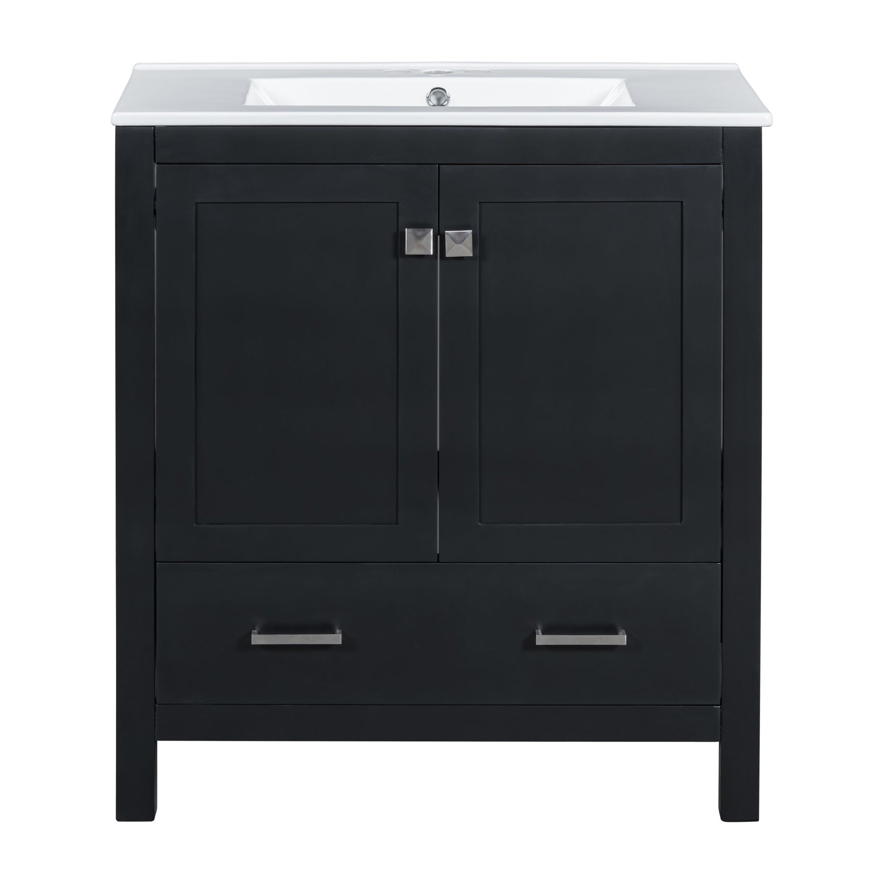 - Elegant and Stylish Appearance: Sleek 30-inch black cabinet with modern design, fashionable handles, and a white sink to enhance bathroom decor and create an inviting ambiance.