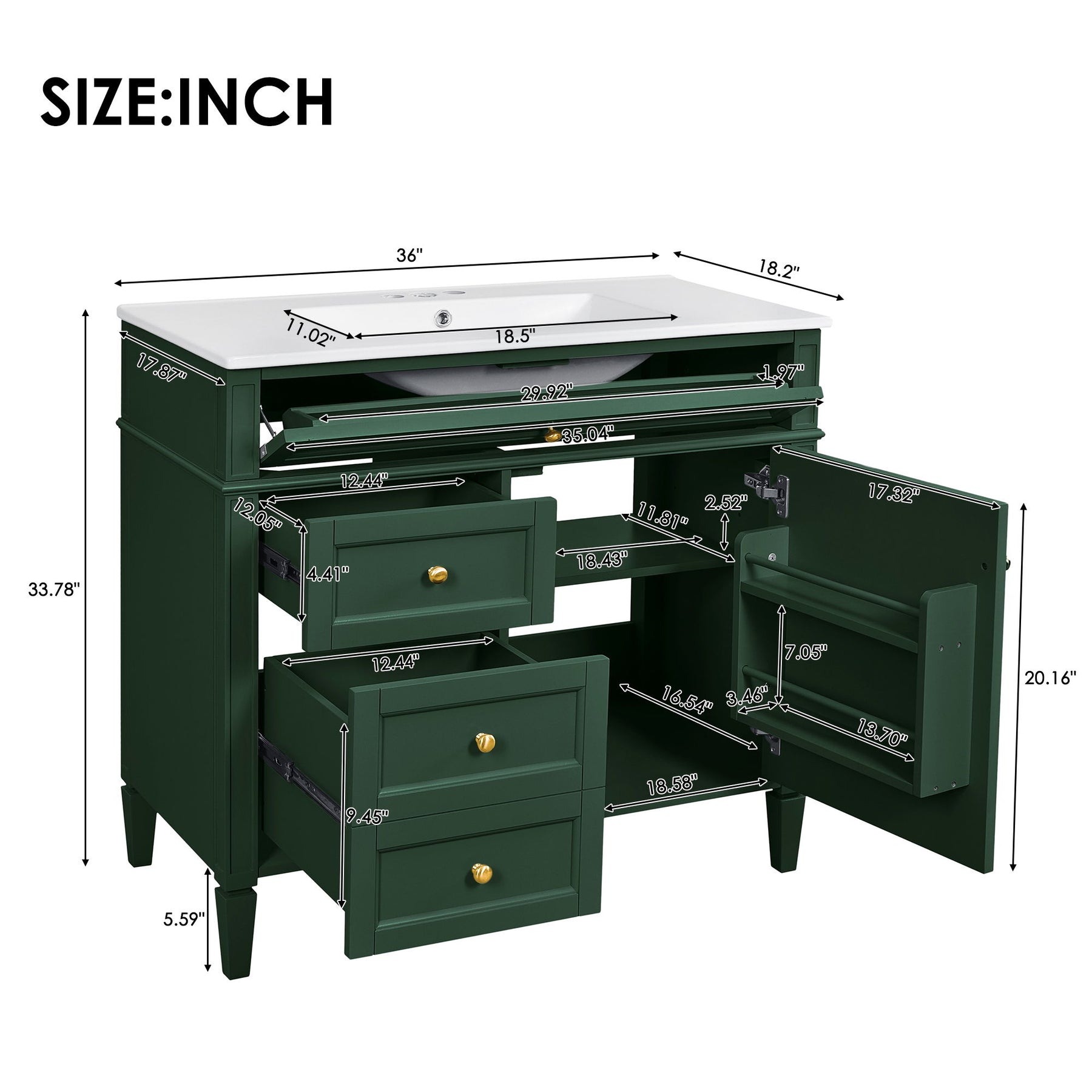 36.0"W x 18.2"D x 33.78"H - 113.54 lb