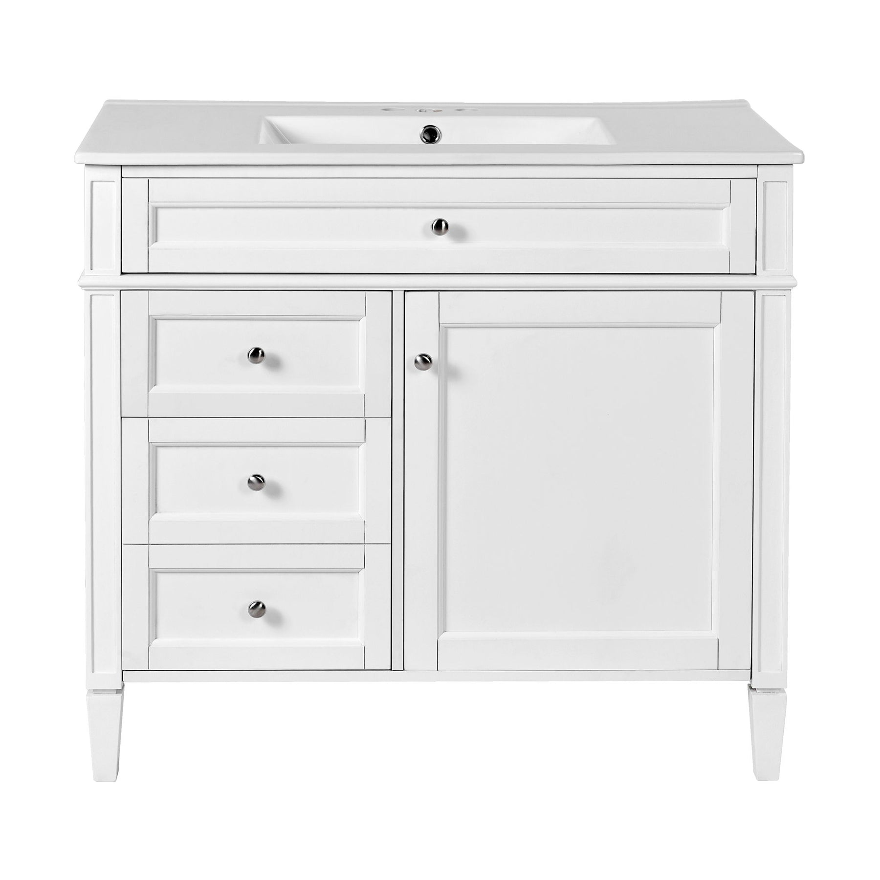 Bathroom Vanity With Top Sink, 2 Drawers And Tip Out Drawer, Rectangular Storage Cabinet - White