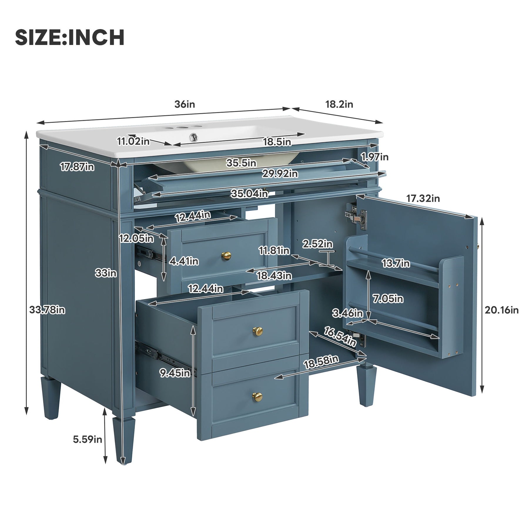 Bathroom Vanity With Top Sink, 2 Drawers And Tip Out Drawer - Indigo Blue