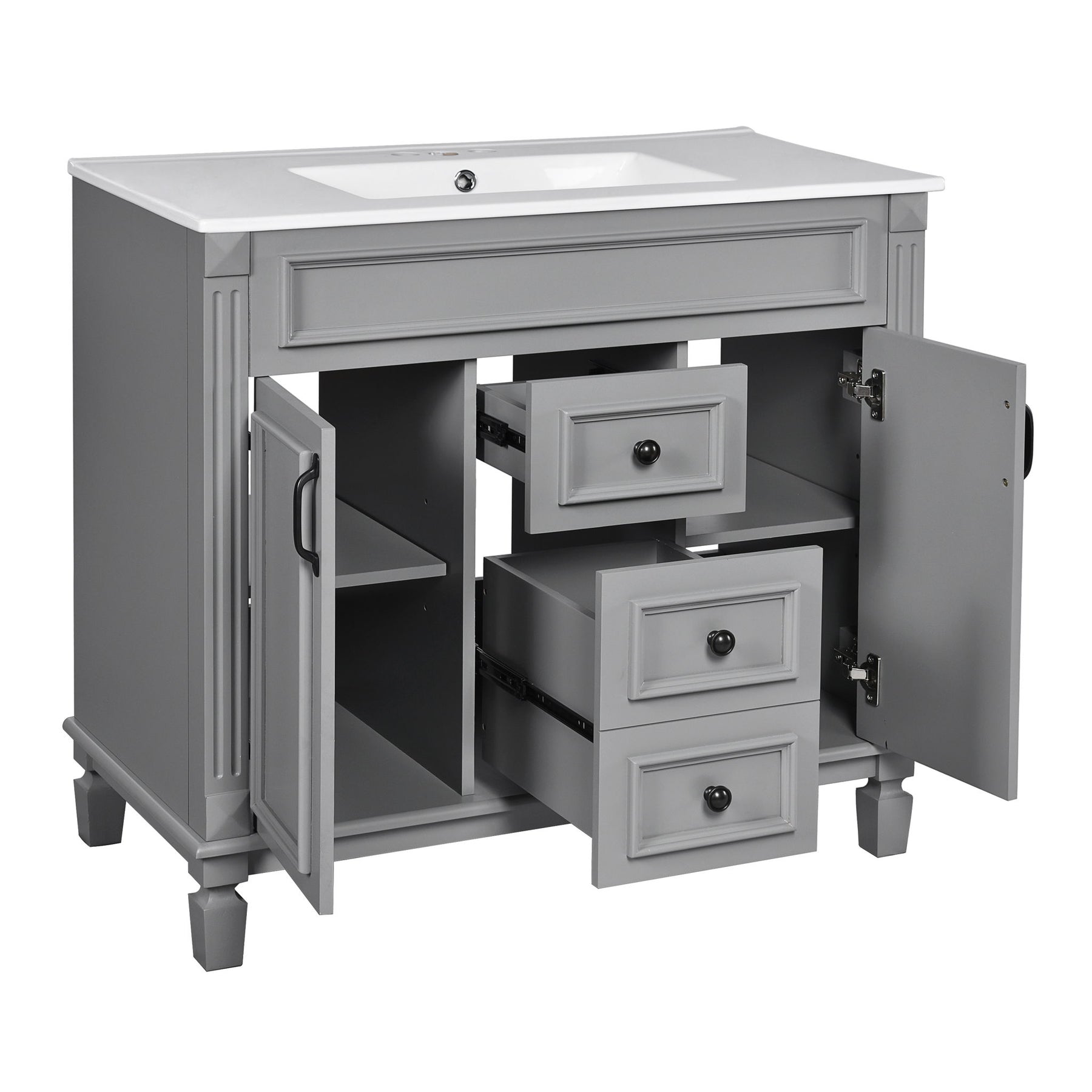- Soft-Closing Storage: Two doors and two drawers feature smooth, quiet operation with water-resistant finish for long-term use