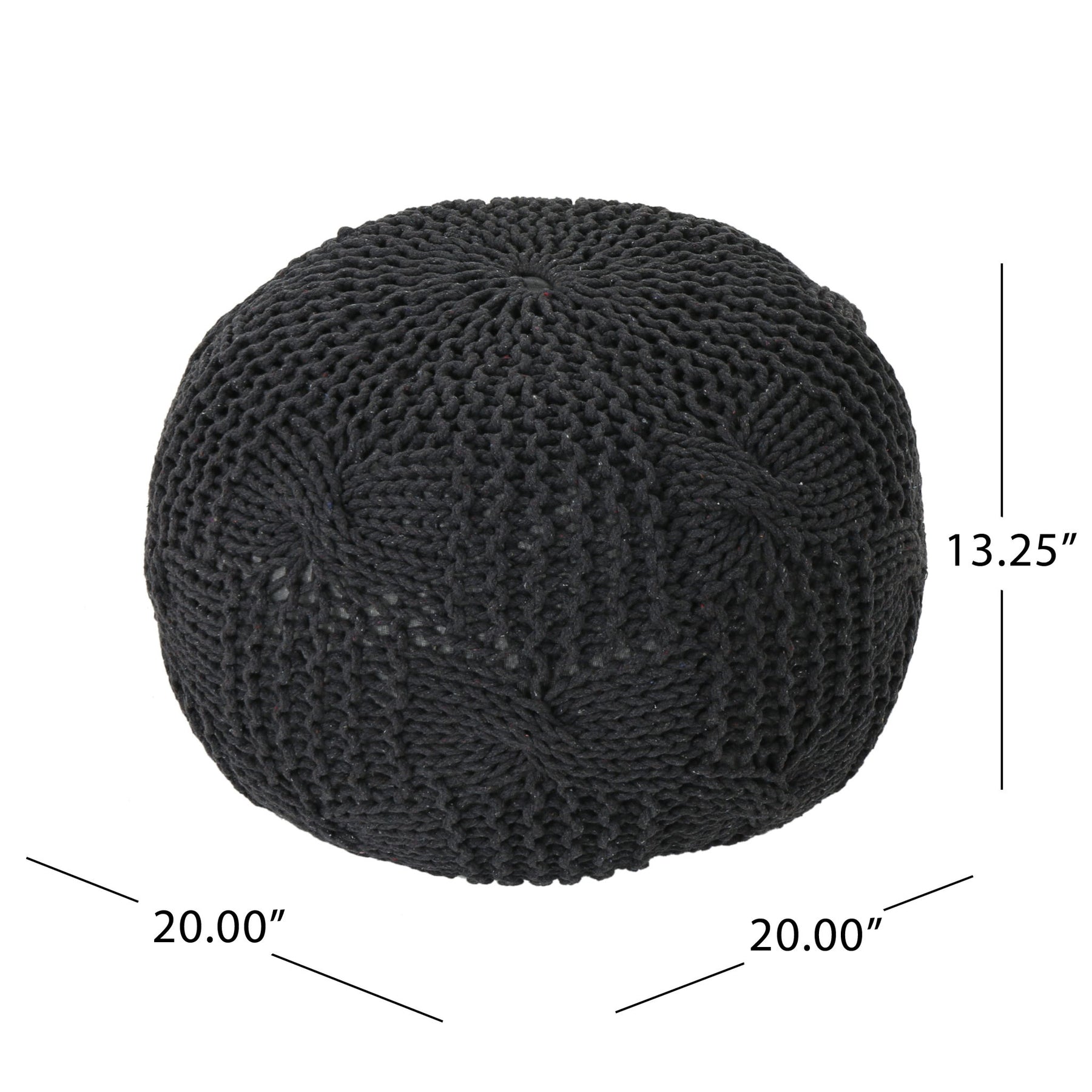 Bordeaux - Knitted Cotton Round Pouf, Multi Purpose Home Accessory - Dark Gray
