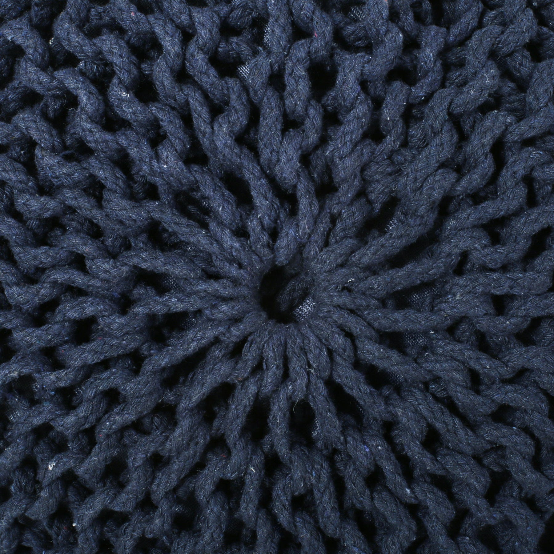 Bordeaux - Knitted Cotton Round Pouf Ottoman And Floor Cushion - Navy Blue