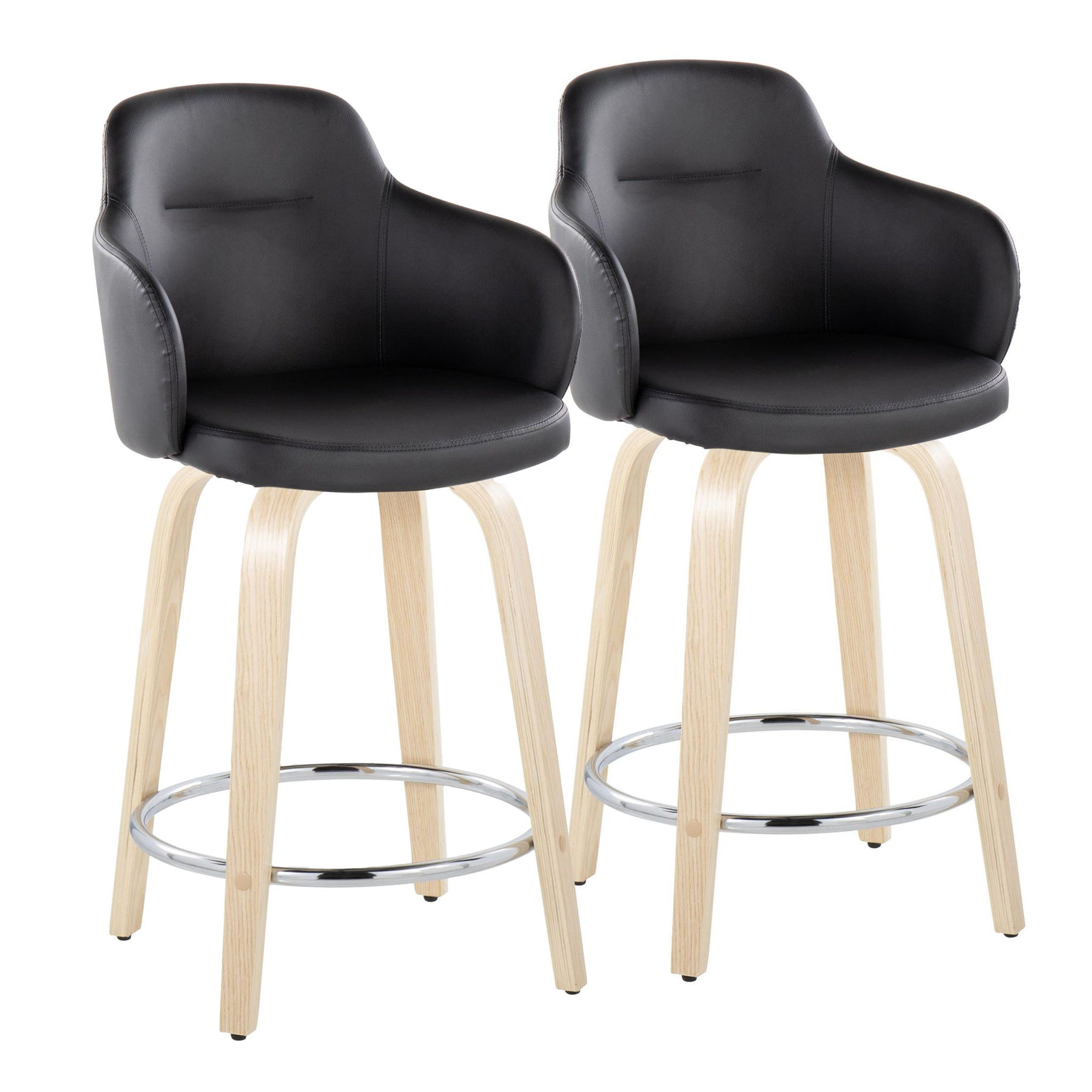 Boyne - Contemporary Fixed Height Counter Stool With Swivel With Round Footrest (Set of 2) - Natural / Black