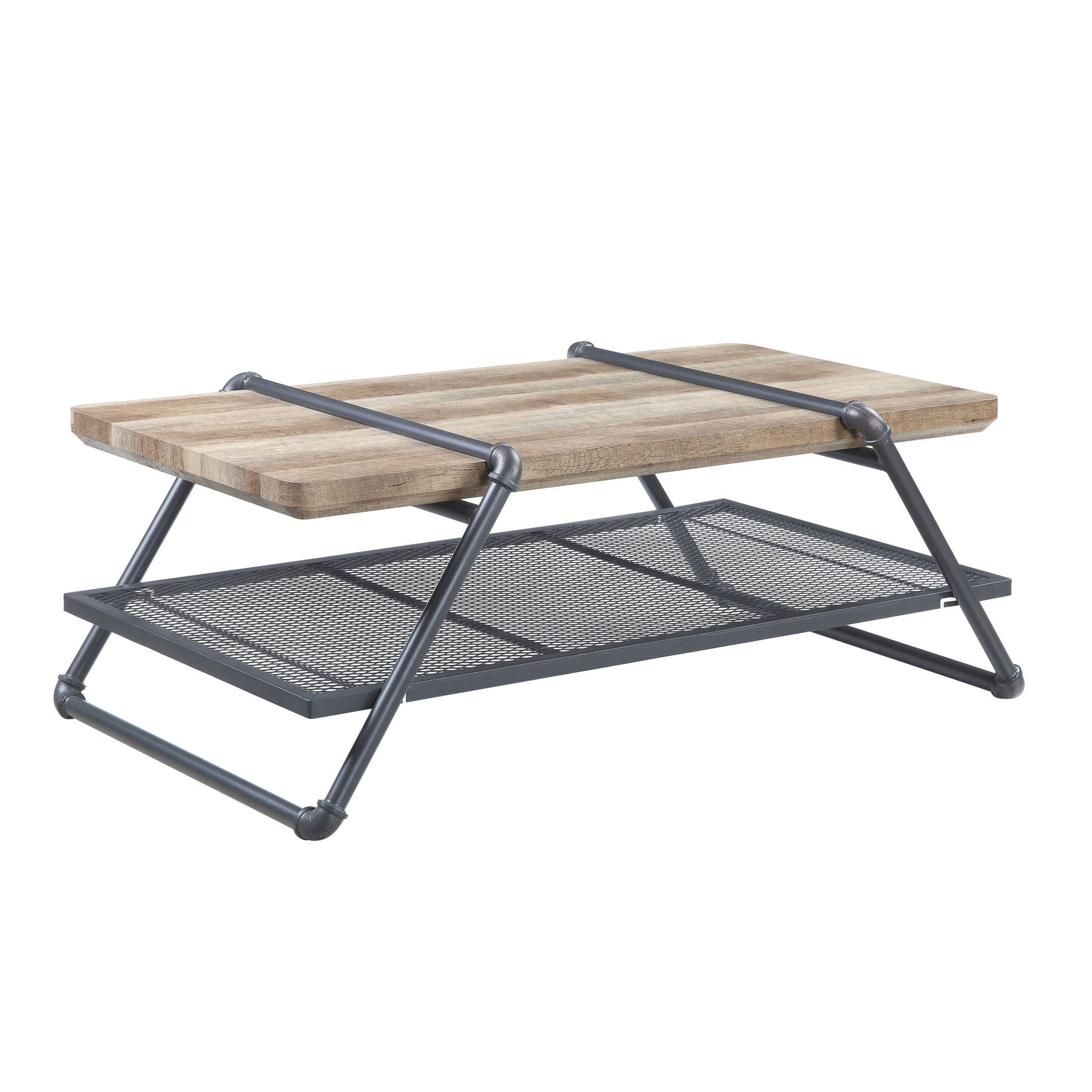 - Stylish Design: This coffee table combines rustic charm and industrial flair with its Oak and Sandy Gray finish, making it a stylish centerpiece for any living room.