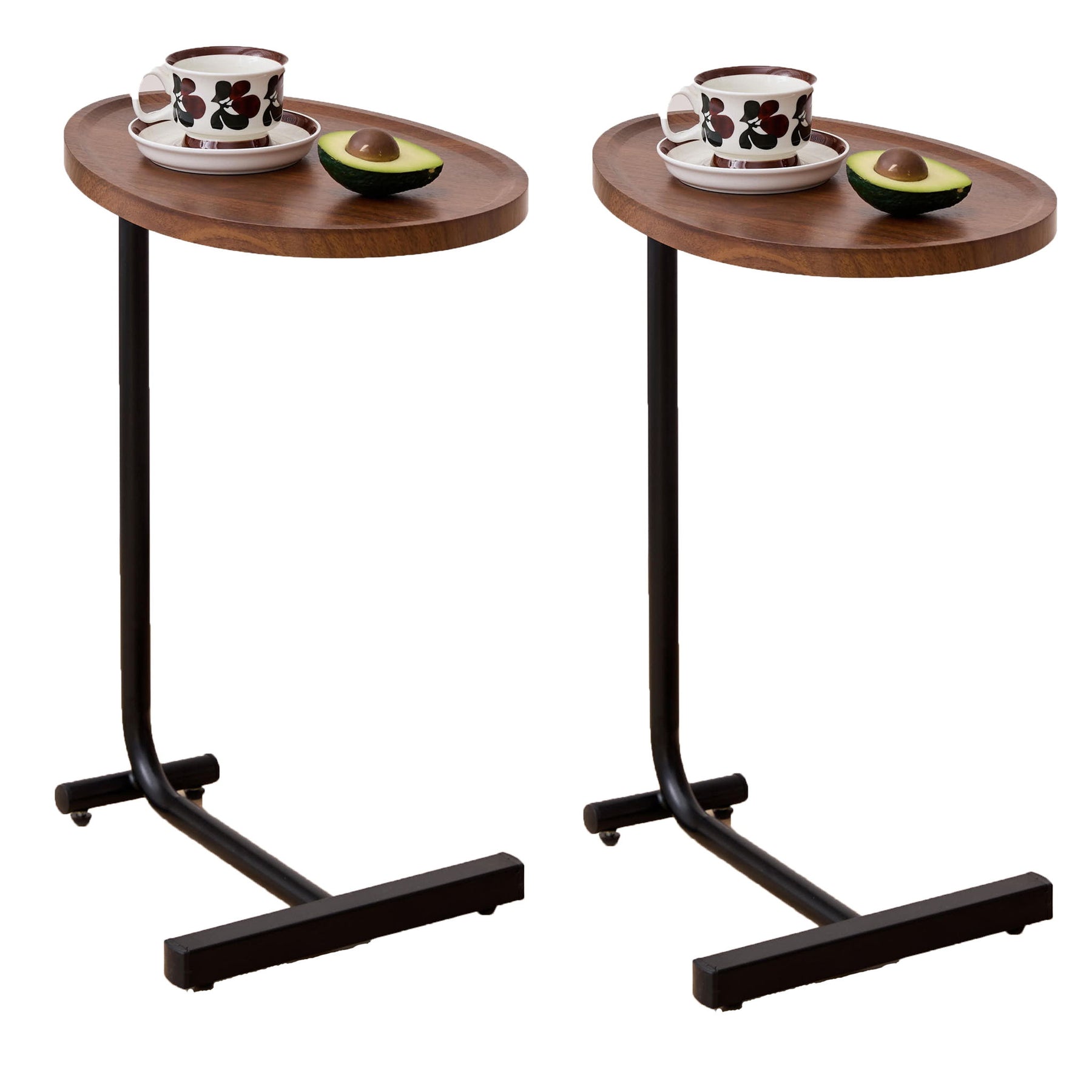 C-Shaped Side Tables (Set of 2), Small Sofa Table For Small Spaces, Living Room, Bedroom - Brown