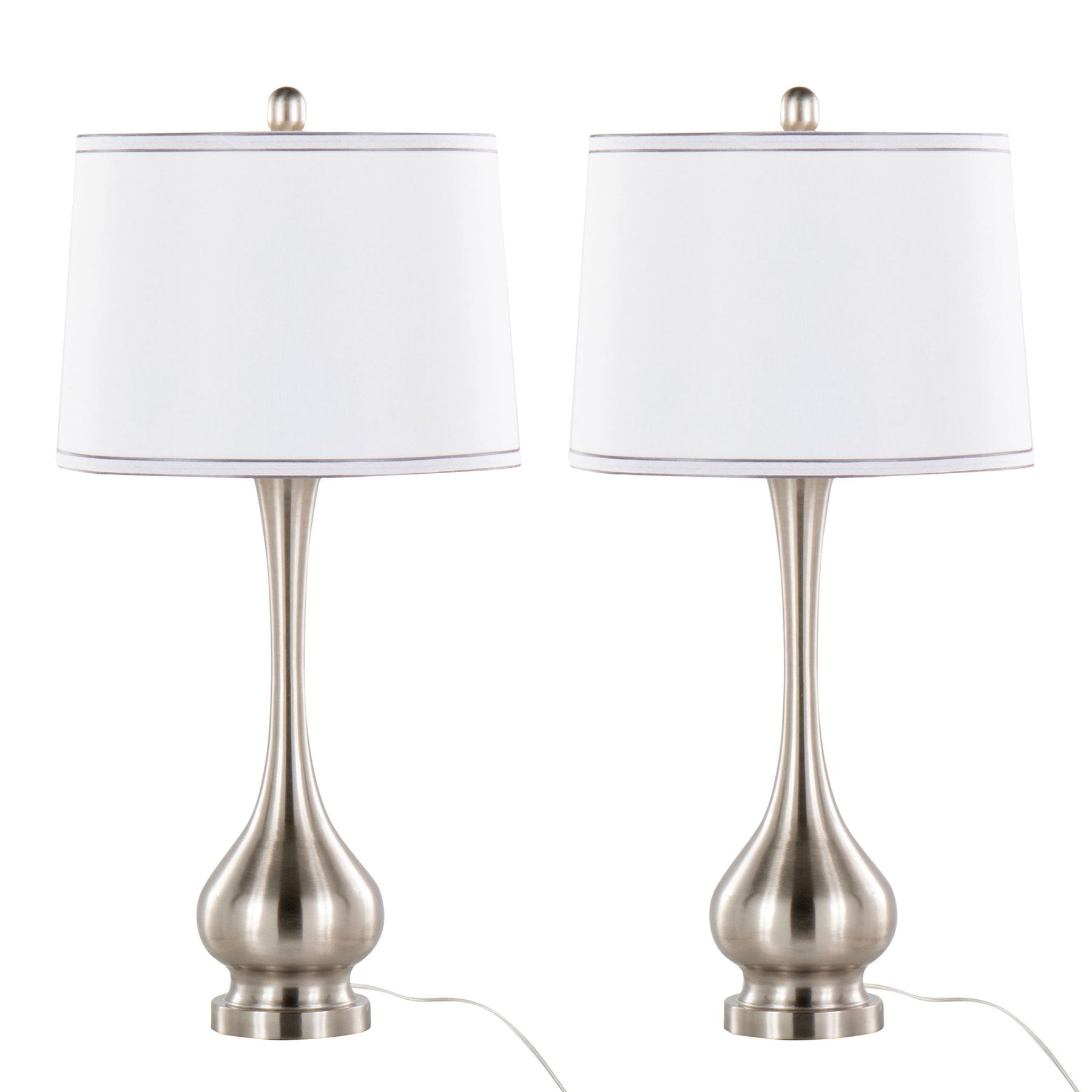 Cairo - Contemporary Table Lamp (Set of 2) - Nickel / White / Silver Trim