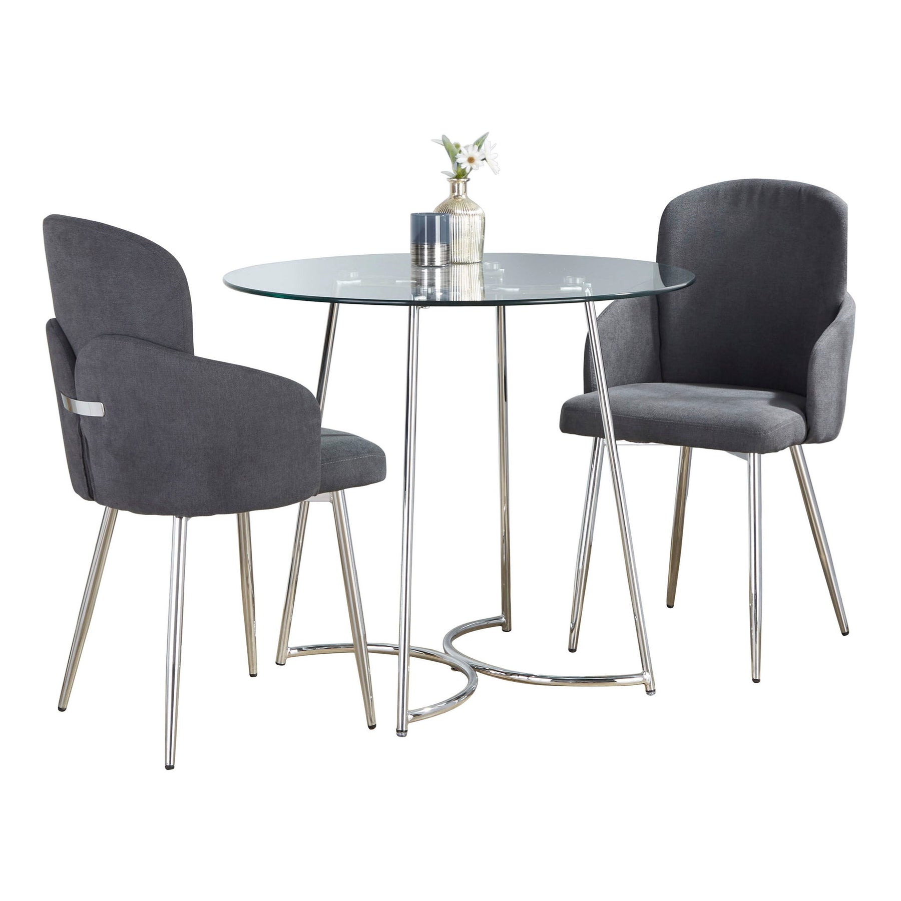 Cece Dahlia - 3 Piece Contemporary Dining Set - Chrome / Clear / Gray