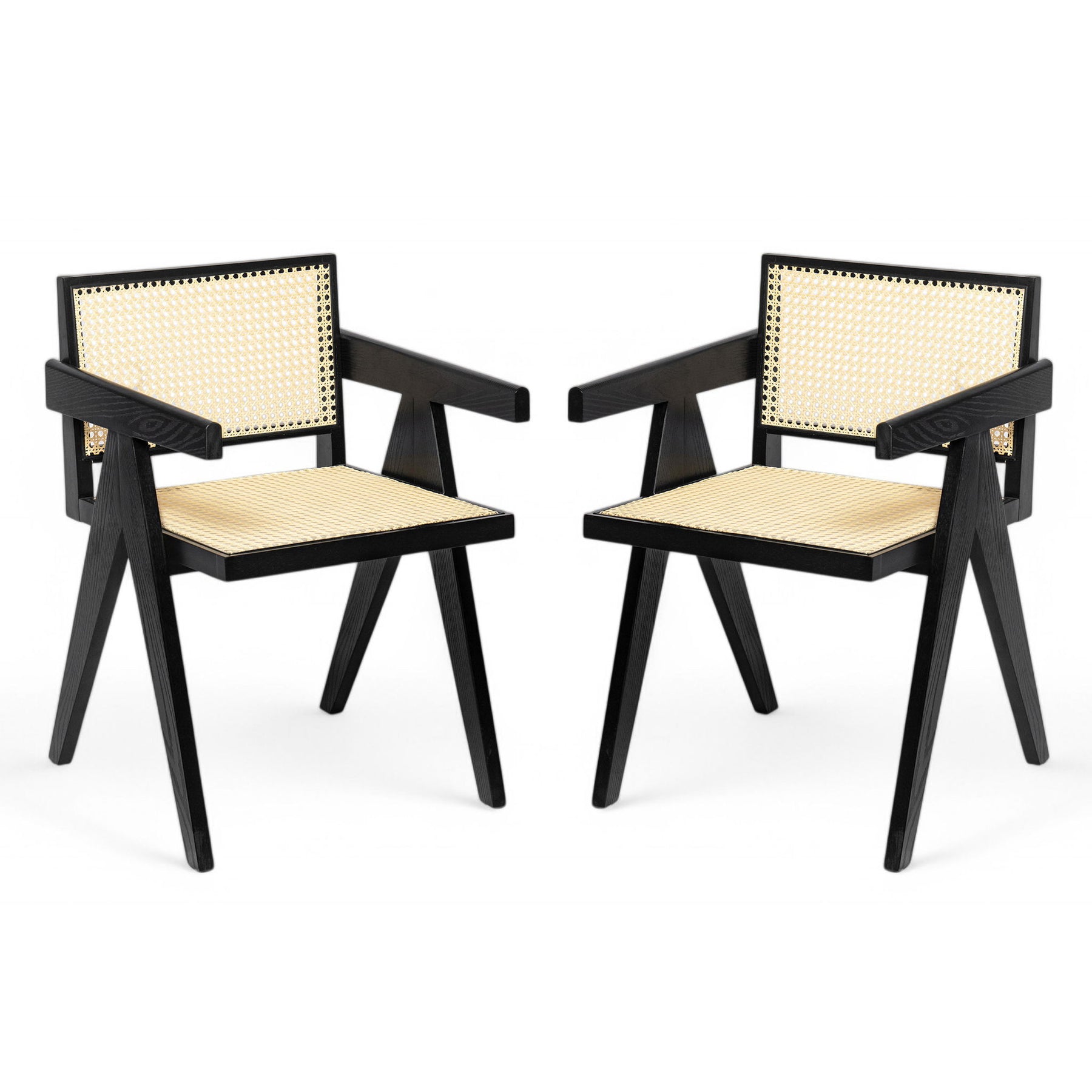 Chandigarh - Arm Dining Chair (Set of 2) With Natural Cane Design / Black