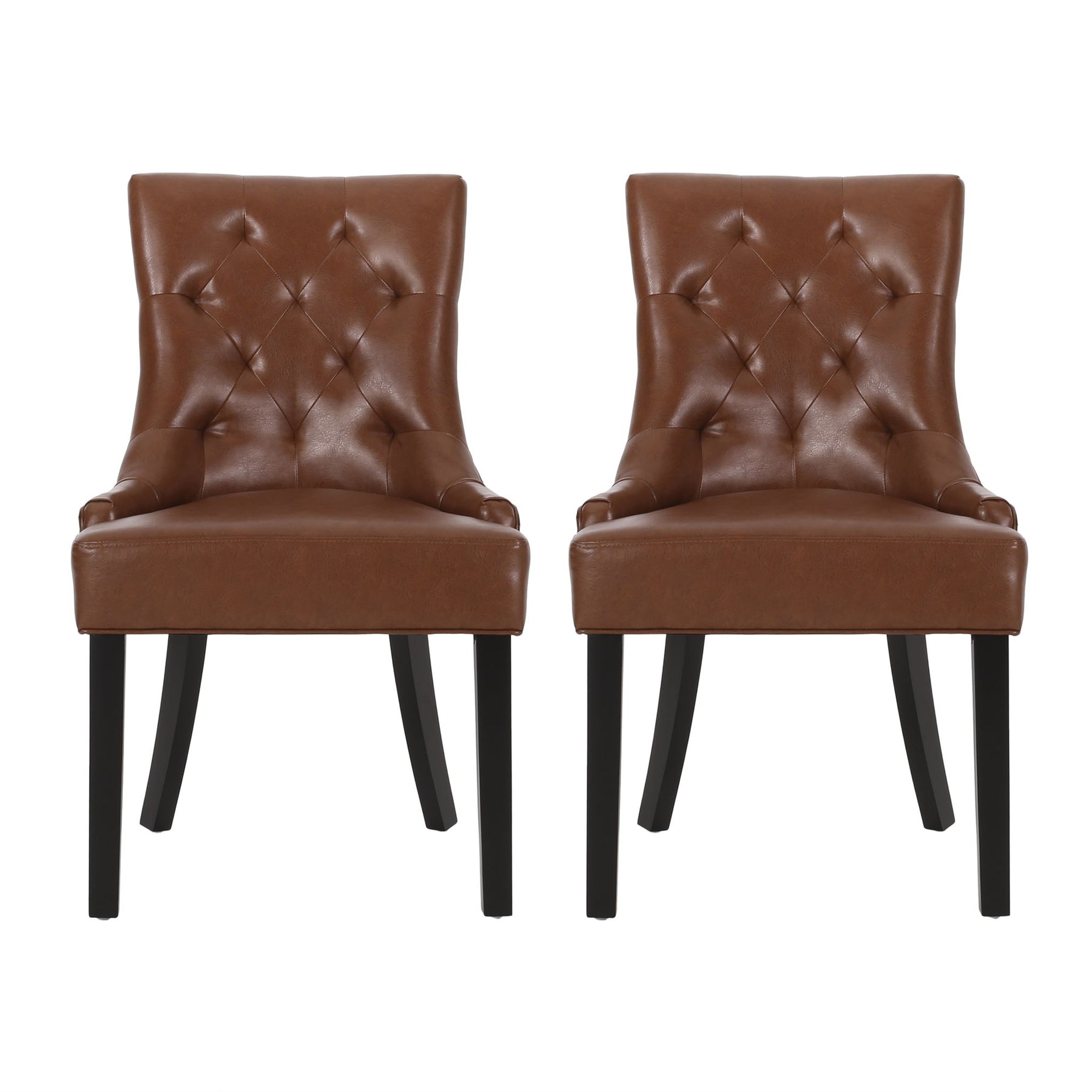Cheney - Contemporary Dining Chair (Set of 2) With Tufted Diamond Stitching And Sloped Arms - Dark Brown