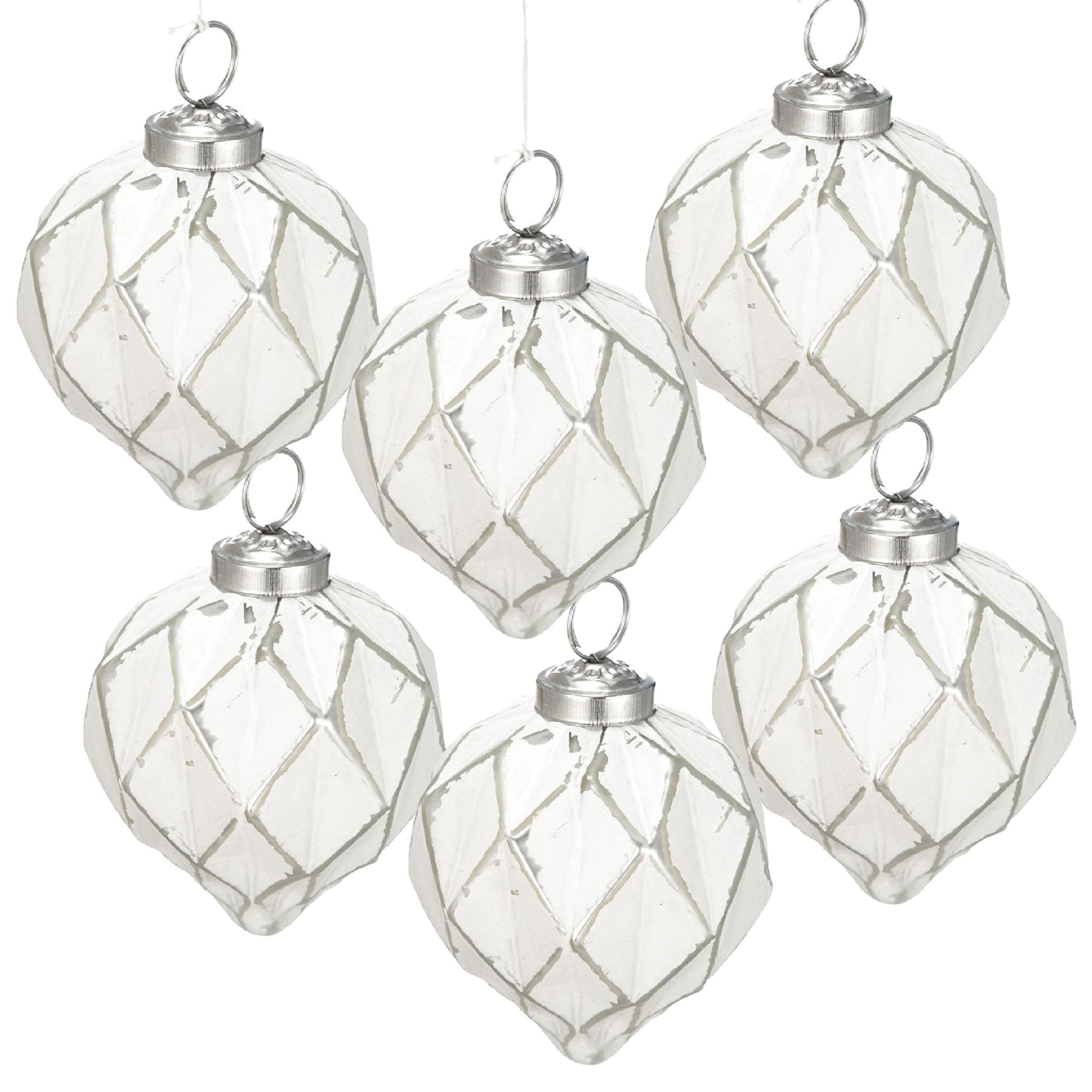 Christmas Ball Ornaments, Glass Decorative Hanging Ball Christmas Tree Ornaments For Holiday Decorations (Set of 6) - White