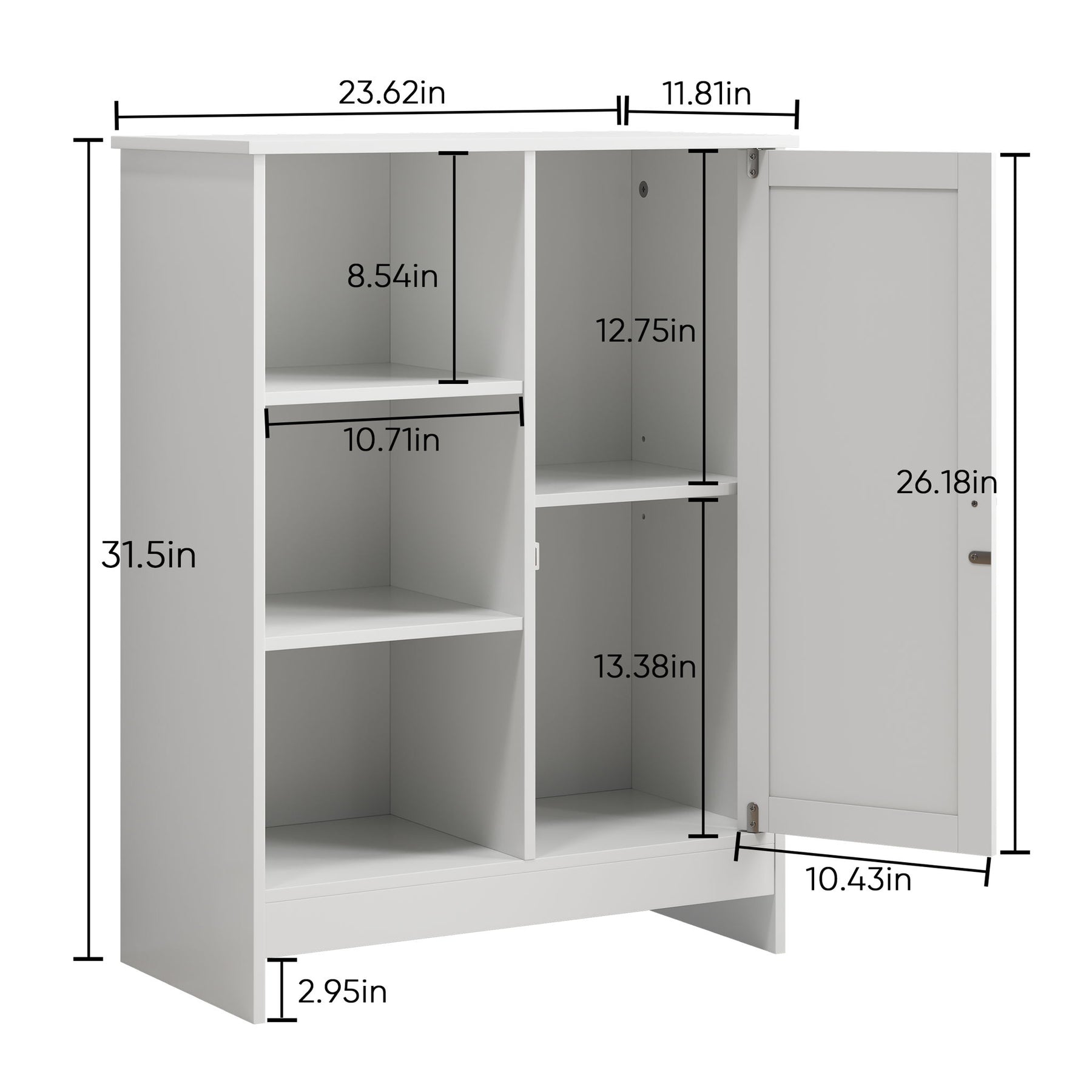 Classic Freestanding Bathroom And Kitchen Storage Cabinet With Adjustable Shelves - White