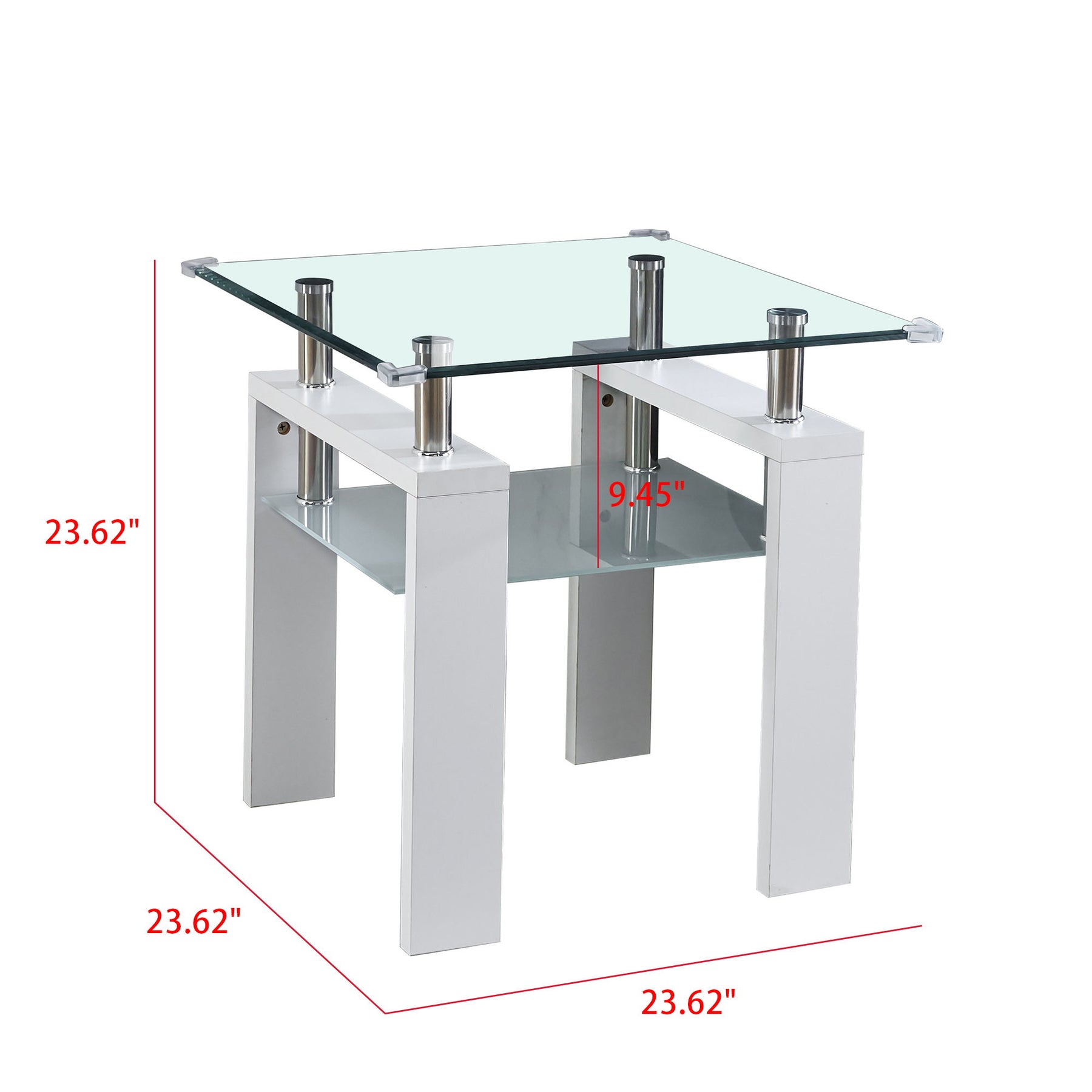 Clear Glass Top Side Table, End Table, Modern Design For Home - White