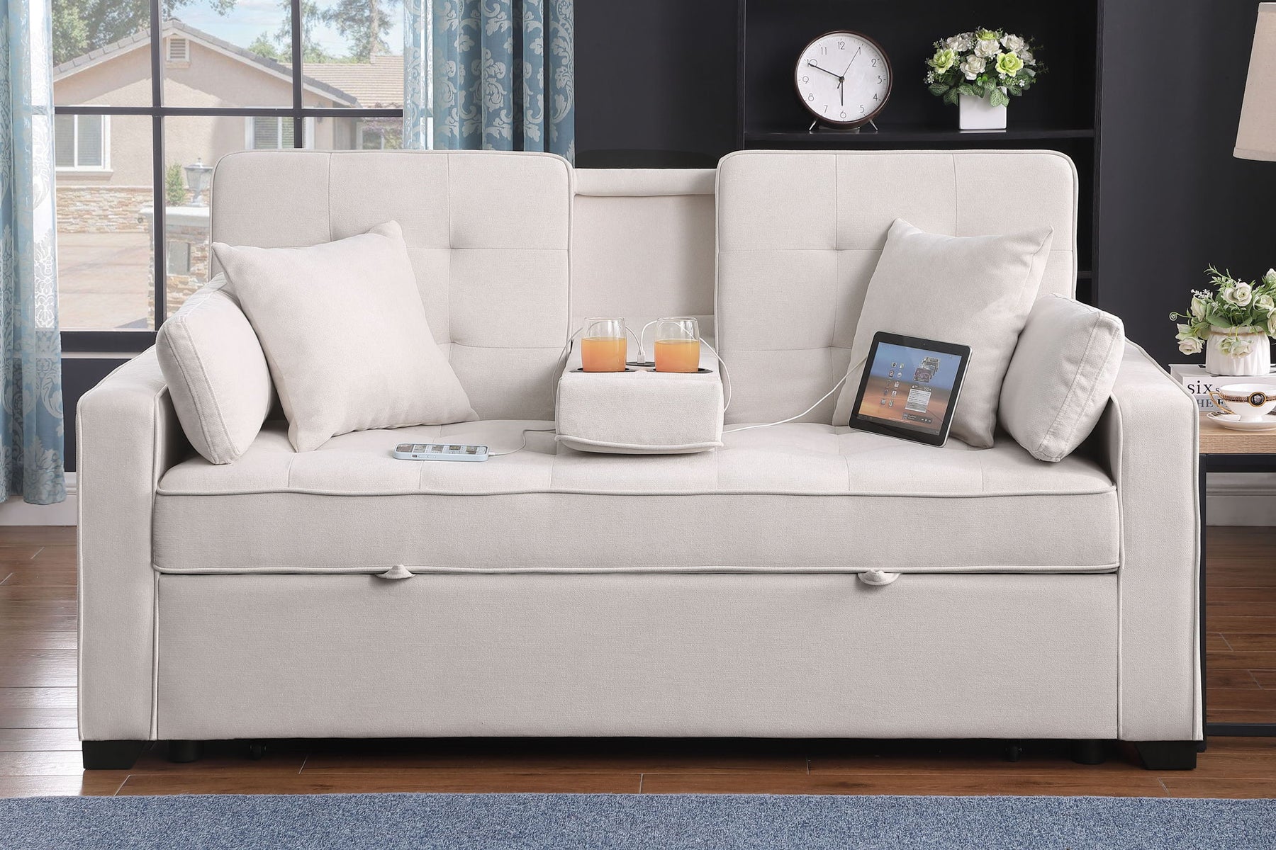 Cody II - Woven Fabric Convertible Sleeper Loveseat With Cup Holder, Charging Ports, Side Pocket, and Pocket Coil Seating - Beige
