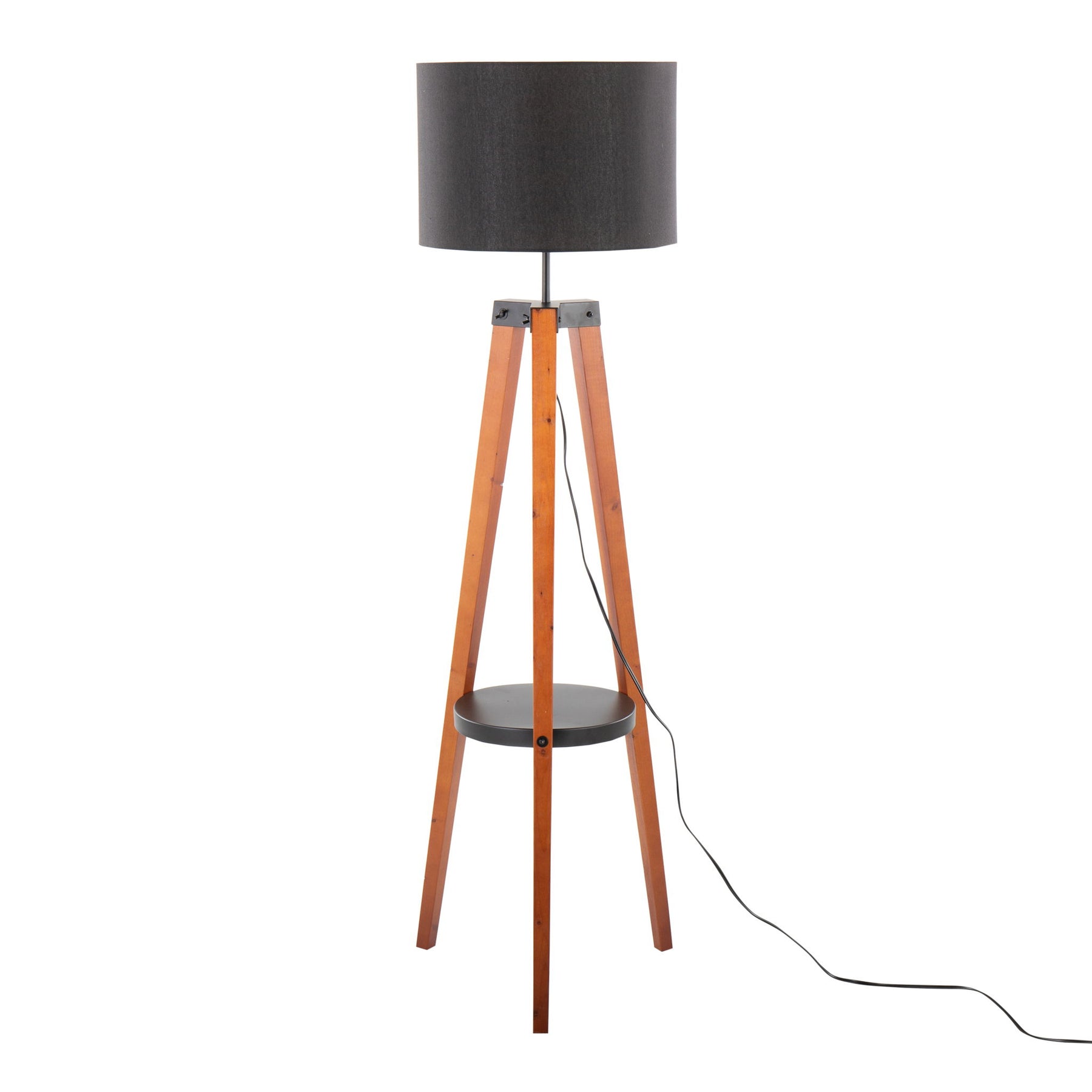 Compass - Mid-Century Modern Floor Lamp With Shelf - Walnut / Black