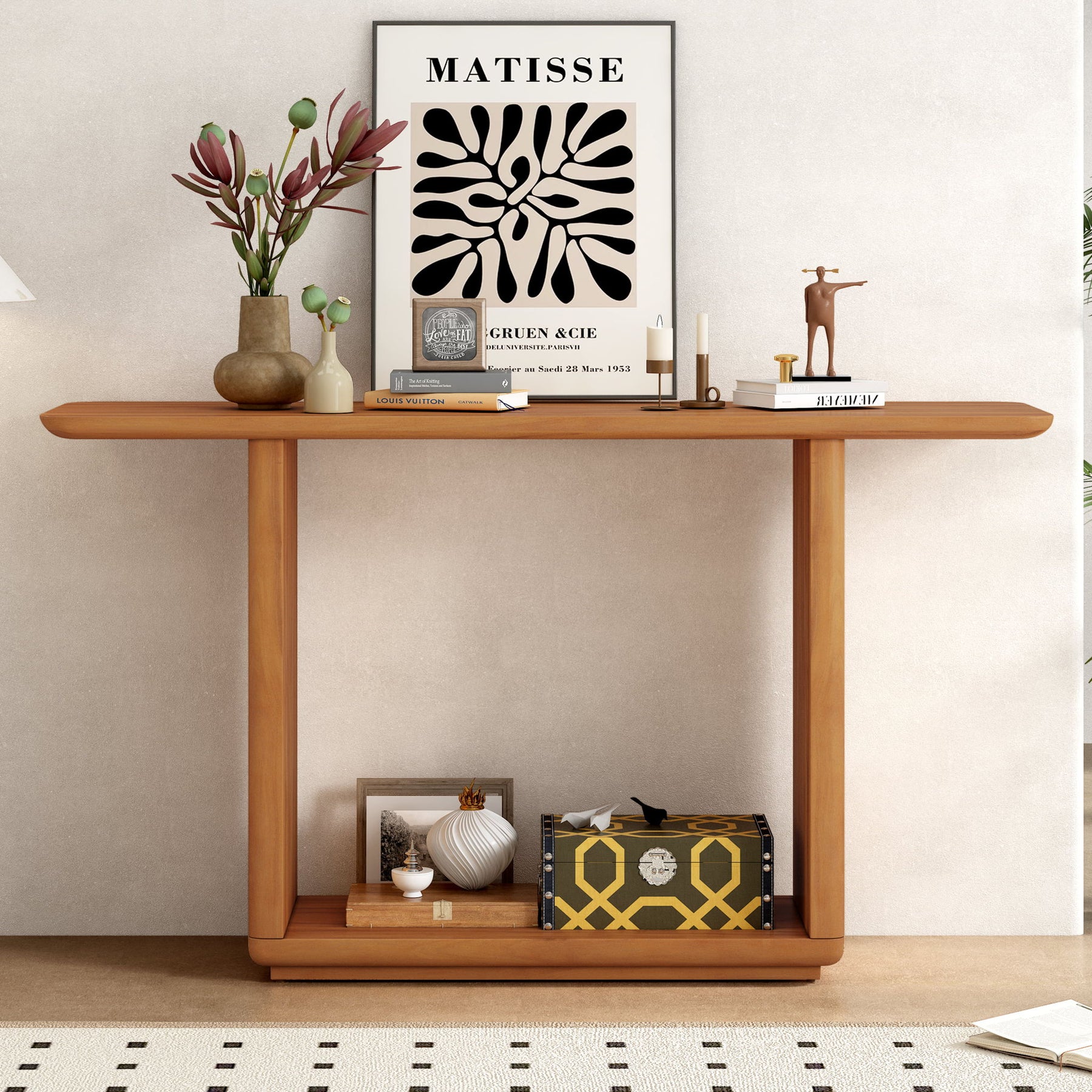 Console Table With Curved Corners And U Base Design - Natural Wood Veneer - Natural