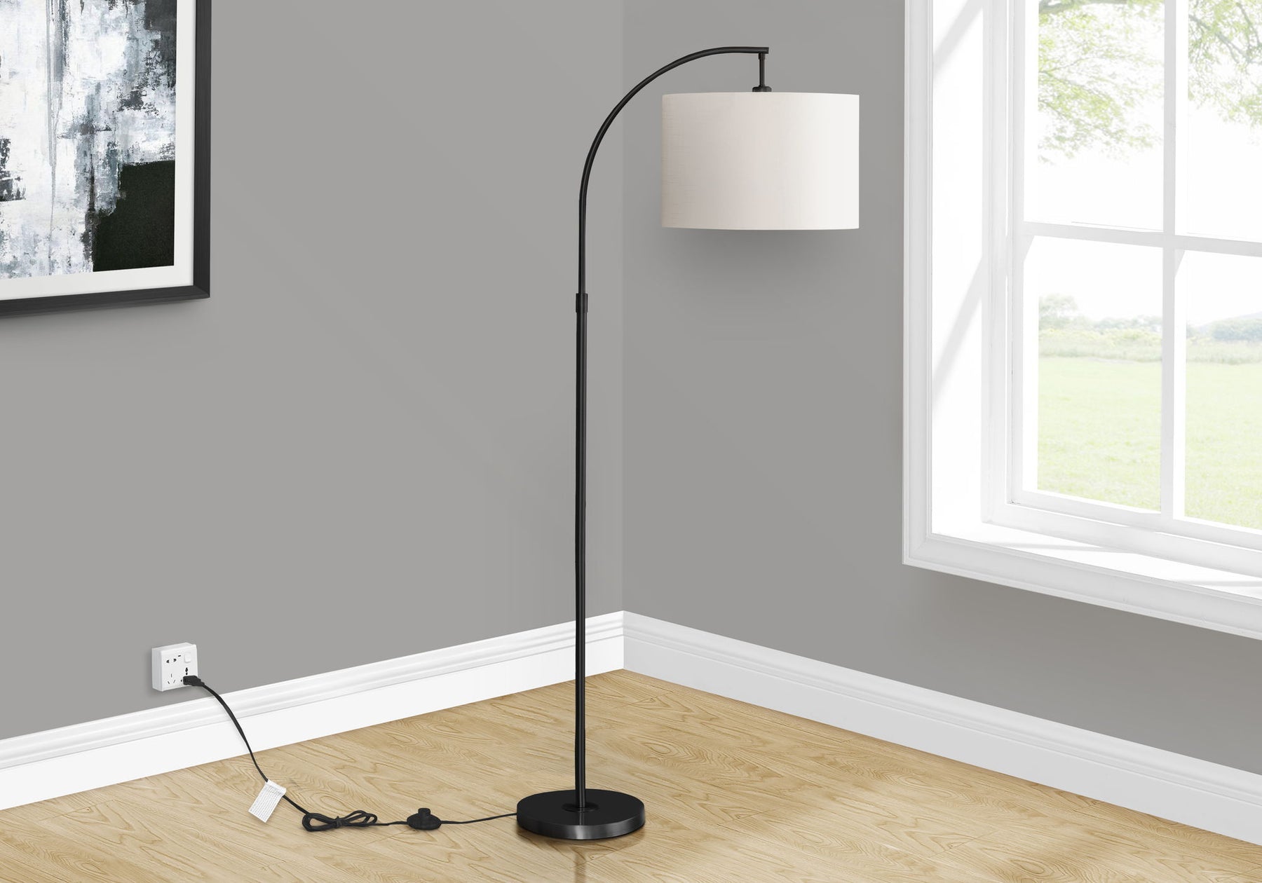 • Elegant Illumination: The arched arm and fabric shade diffuse light beautifully, creating a warmly lit room with style.