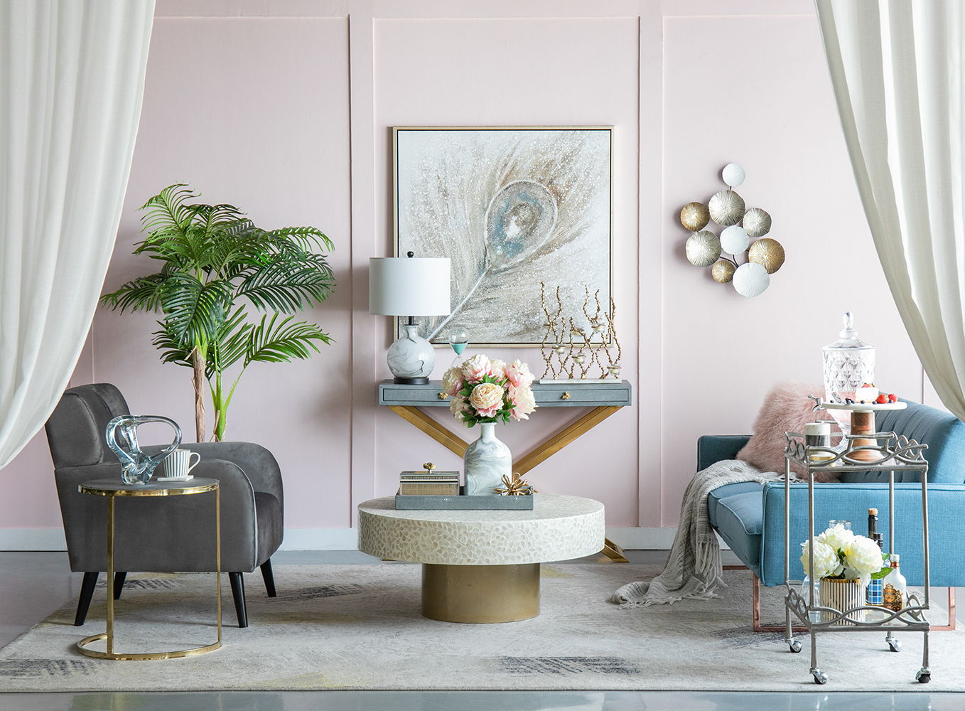 • Artistic Design: Features a contemporary metal sculpture with a golden and white color scheme.